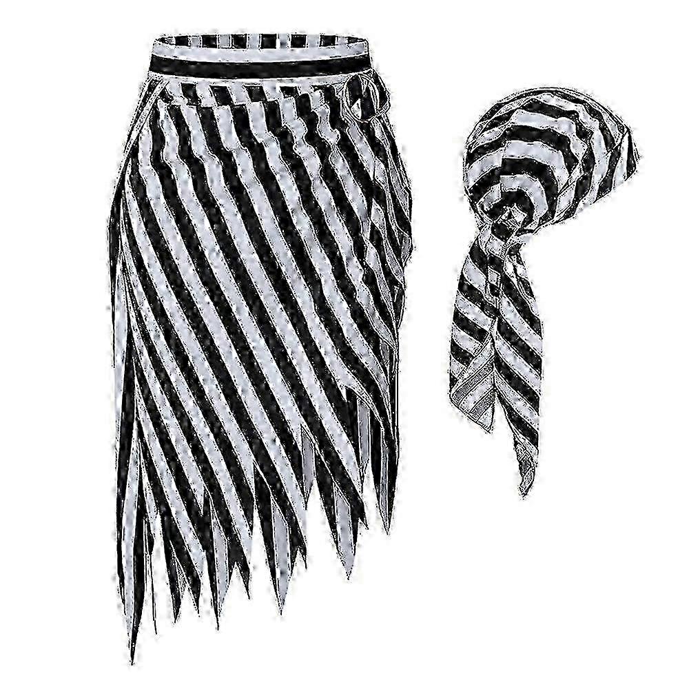 2024 Women's Pirate Costume with Renaissance Blouse, Corset, and Striped Headscarf