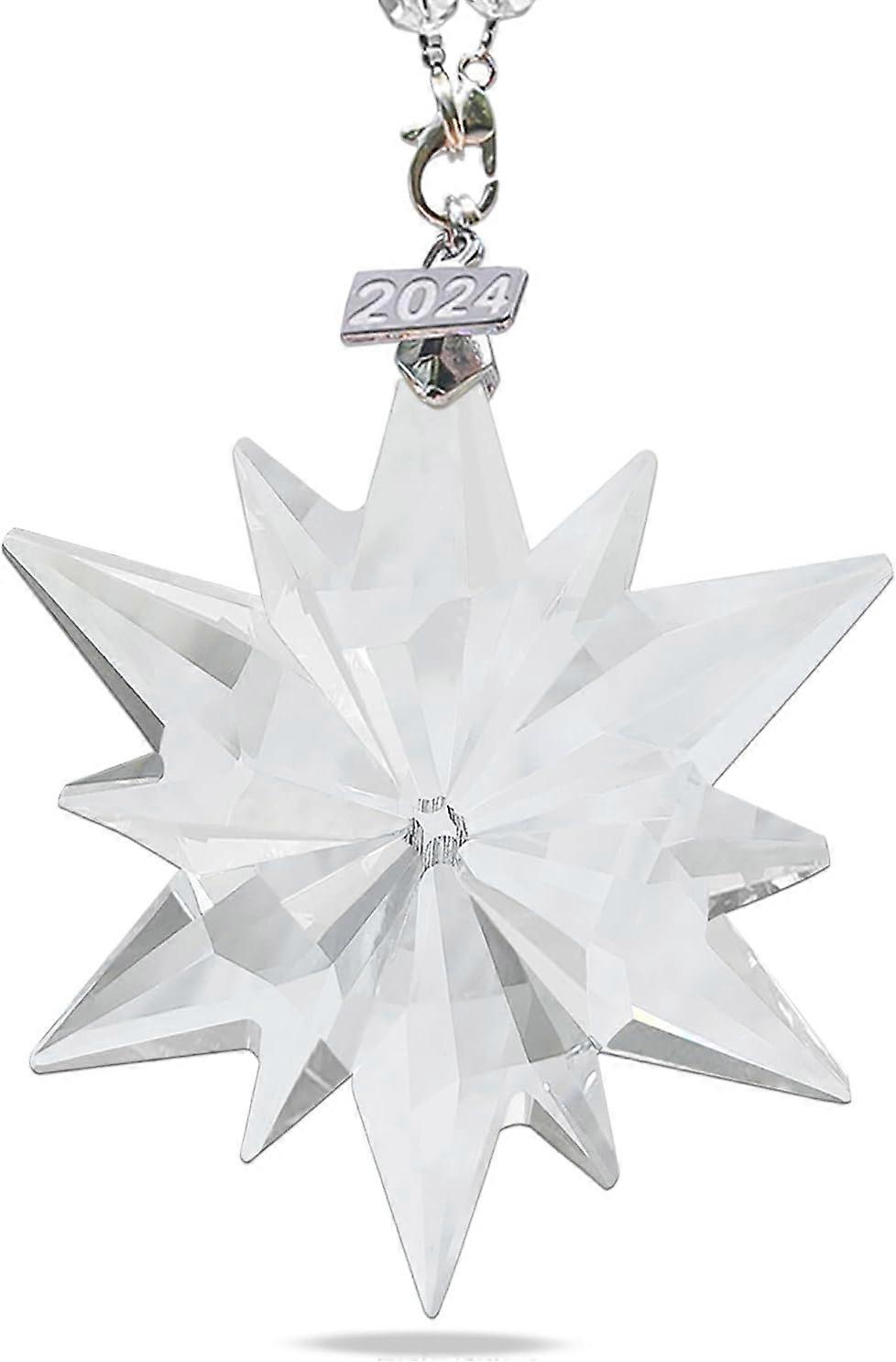 2024 Annual Christmas Ornaments Crystal Snowflake Star, Sparkly Crystal Ornaments for Christmas Tree, Beautiful Christmas Ornaments for Women Girls,Wh
