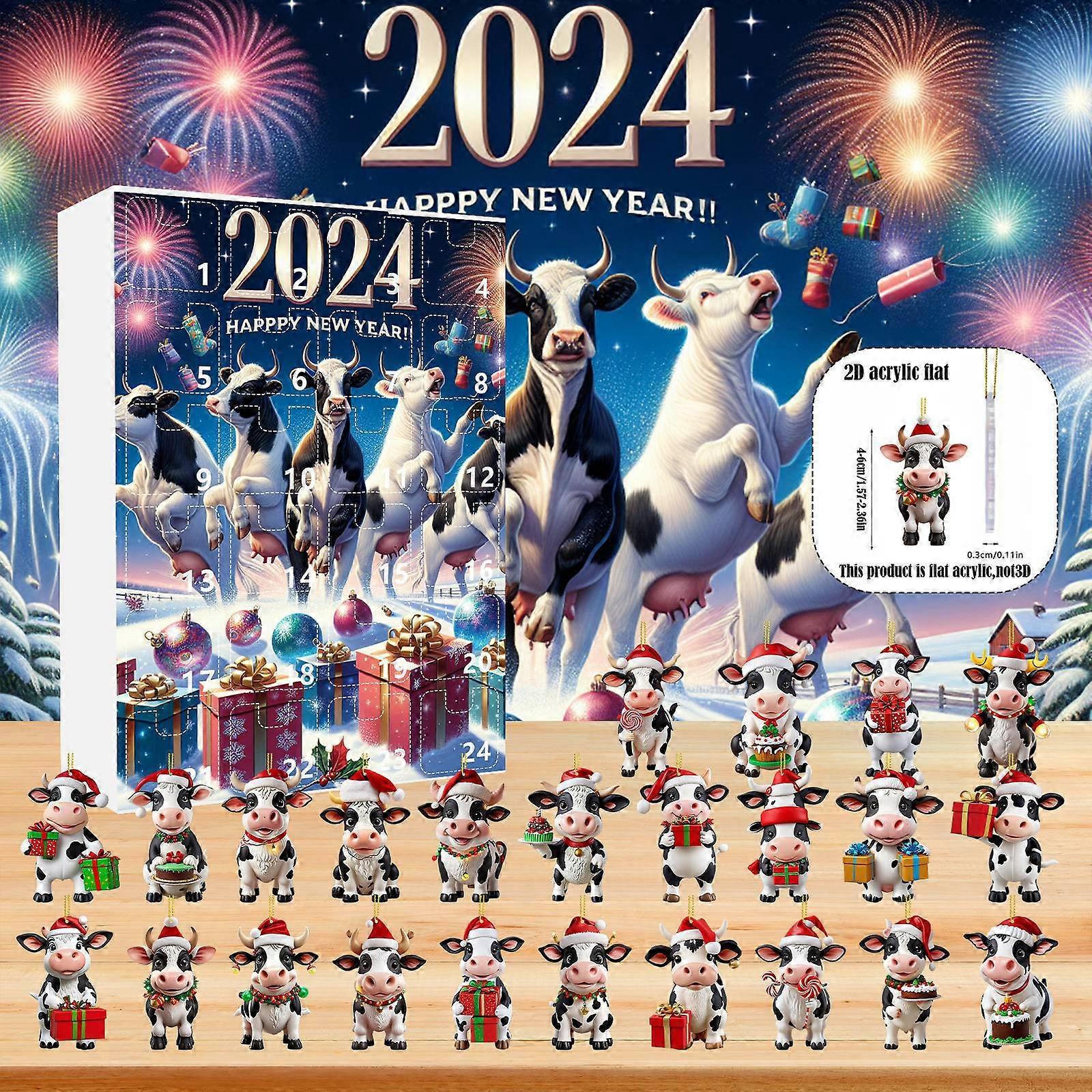 2024 New Advent Countdown Calendar 24 Day Christmas Advent Calendar Cute Cow Christmas Ornaments Pendant Christmas Cow Figures And Accessories Holiday
