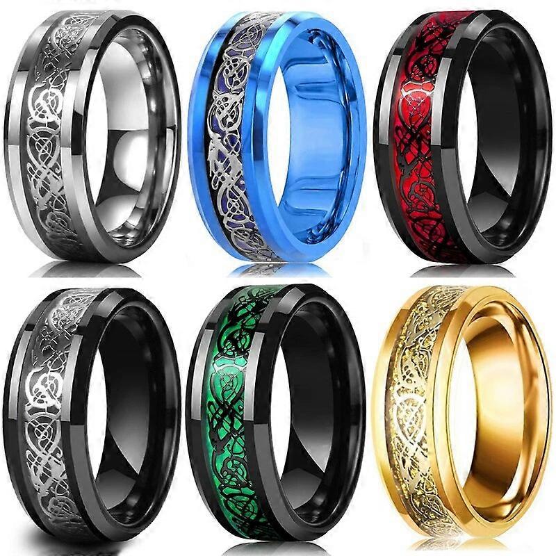 2024 new model 10 Colors 8mm Men's Stainless Steel Celtic Dragon Ring Inlay Red Green Black Carbon Fiber ring Wedding Band Jewelry Size 6-13