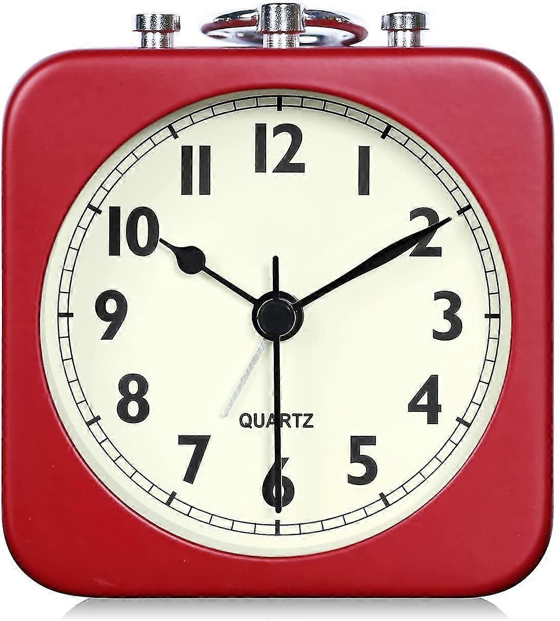 For 2024 Square Cherry Red Metal Alarm Clock - Bedside Battery Powered, Silent Non-Ticking Analog