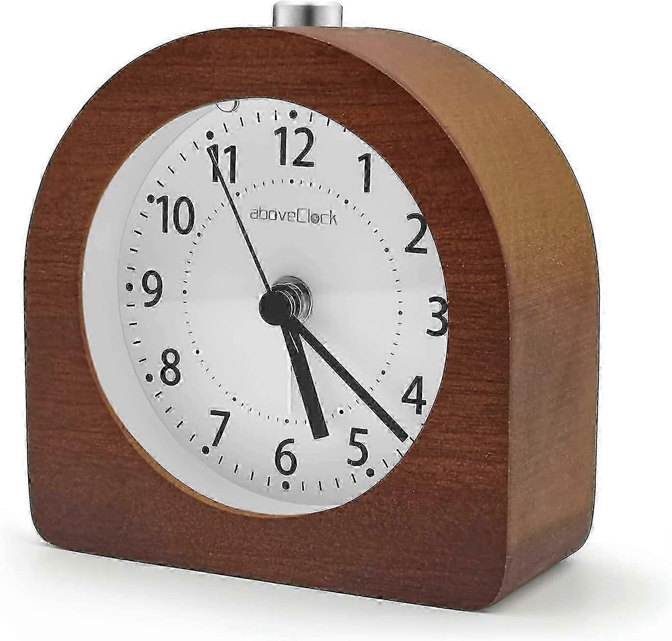 2024 Battery Operated Snooze Travel Alarm Clock with Wood Finish and Silent Analog Display