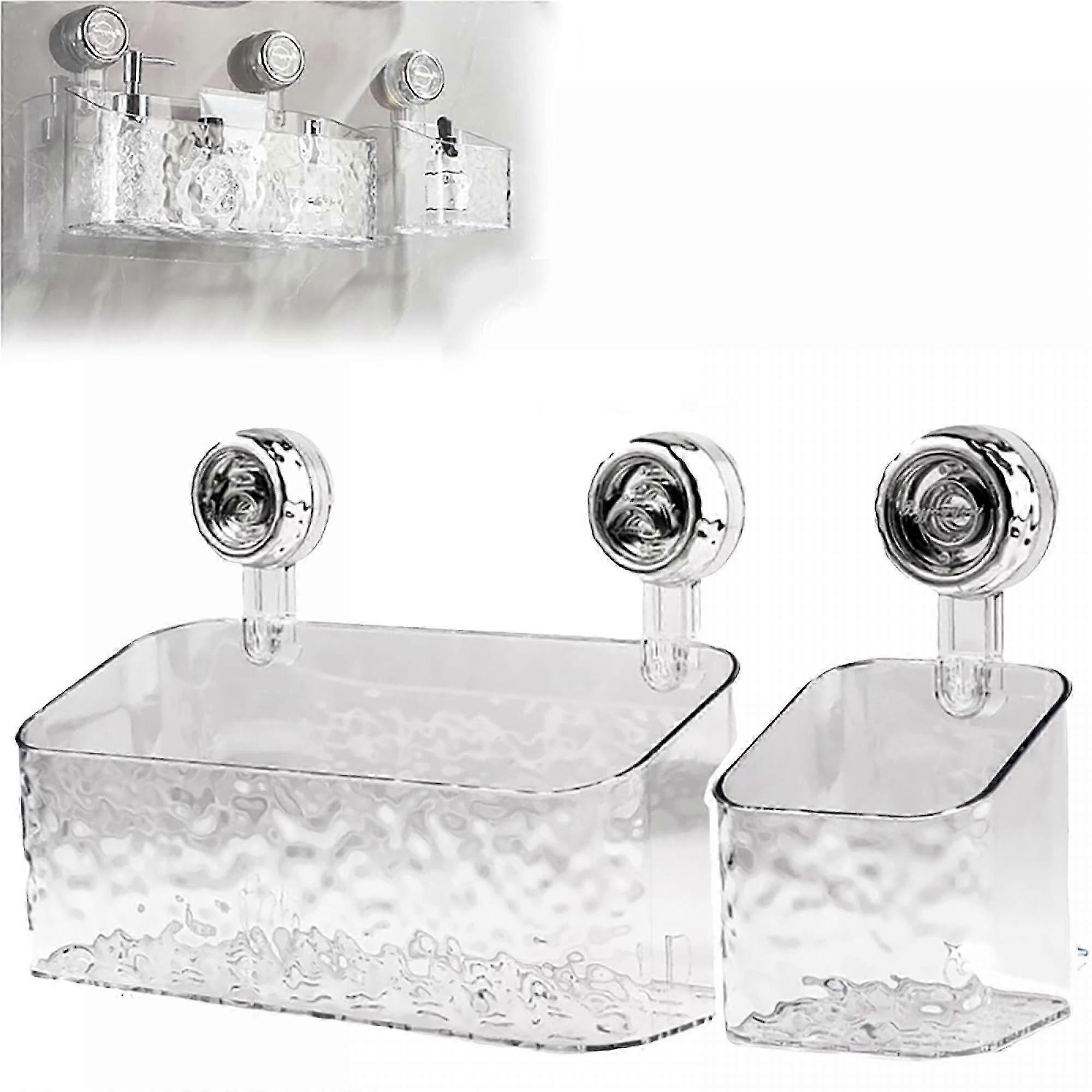 Shower Caddy - Updated Shower Dispenser Soap OrganizerWall-mounted storage, long-lasting adsorption, does not hurt the wall. Suction shower caddy is space-saving, thickened PET material is stable and load-bearing, not shaky.Shower Suction Cup Shelf Basket - Two Size Suction ShelfSmall size: 9.5*9.5*10cm, Large size: 29.5*9.5*10.5cm. Small size shower shelves suitable for fork spoon toothbrush / toothpaste mouth stationery razor chopsticks. Large suction cup shelf is suitable for water, milk, face wash, cream, fragrance, wash cup, mask.Suction Shower Caddy - Four Quick Steps To InstallStep One - Wipe the wall with a clean cloth, Step two - Tear off the non-marking film and stick the suction cup shower caddy to the wall. Step Three - Tighten to the right to fix, Step four - Installation is complete can be placed.Light Luxury Style Glacier Pattern Suction Cup Shelf - Large Capacity Suction Cup ShelfThe shower caddy suction cup large aperture design allows for ventilation and easy cleaning, and you can connect multiple baskets to create more space for more bathroom products, such as large sizes of shampoo and conditioner.Shower Dispenser Soap Organizer - Punch free InstallationNo tools, no drilling, extremely easy to install the shower basket with the suction cup. This light luxury style glacier pattern suction cup shelf works for non-porous, impermeable, smooth surfaces such as glass, mirror, polished metal, stainless steel, plastic board, wall tile, grainy granite, etc.