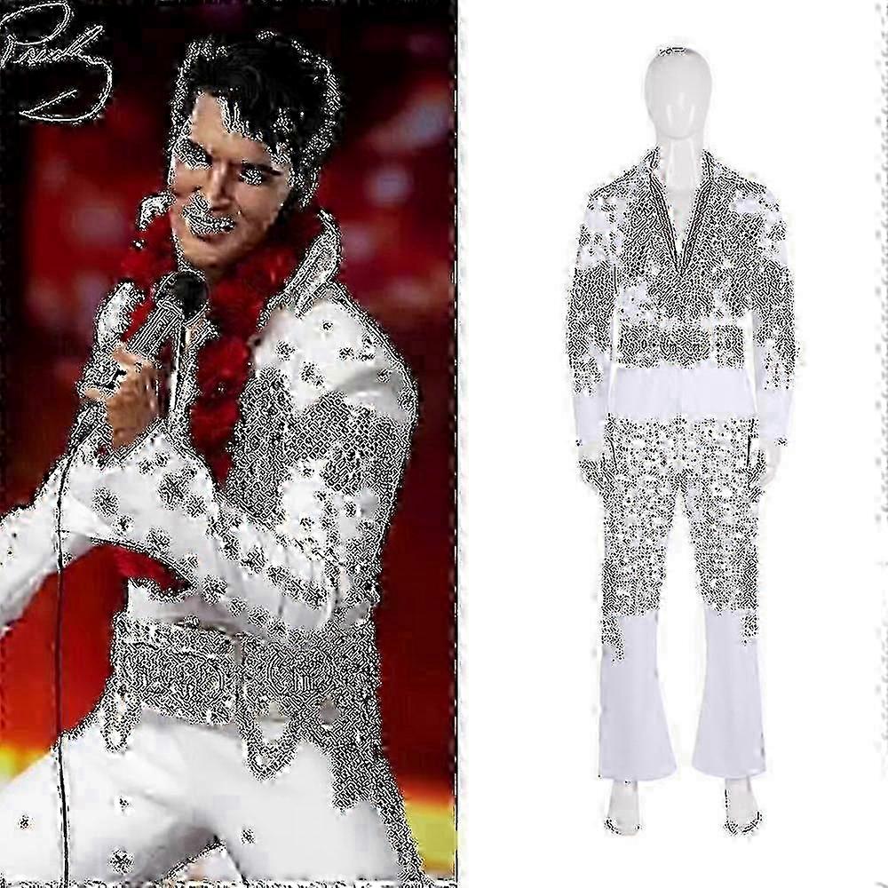 2024 Outdoor White Elvis Presley Cosplay Costume for Rock Singer Halloween Party Performance and Dance with CDSH
