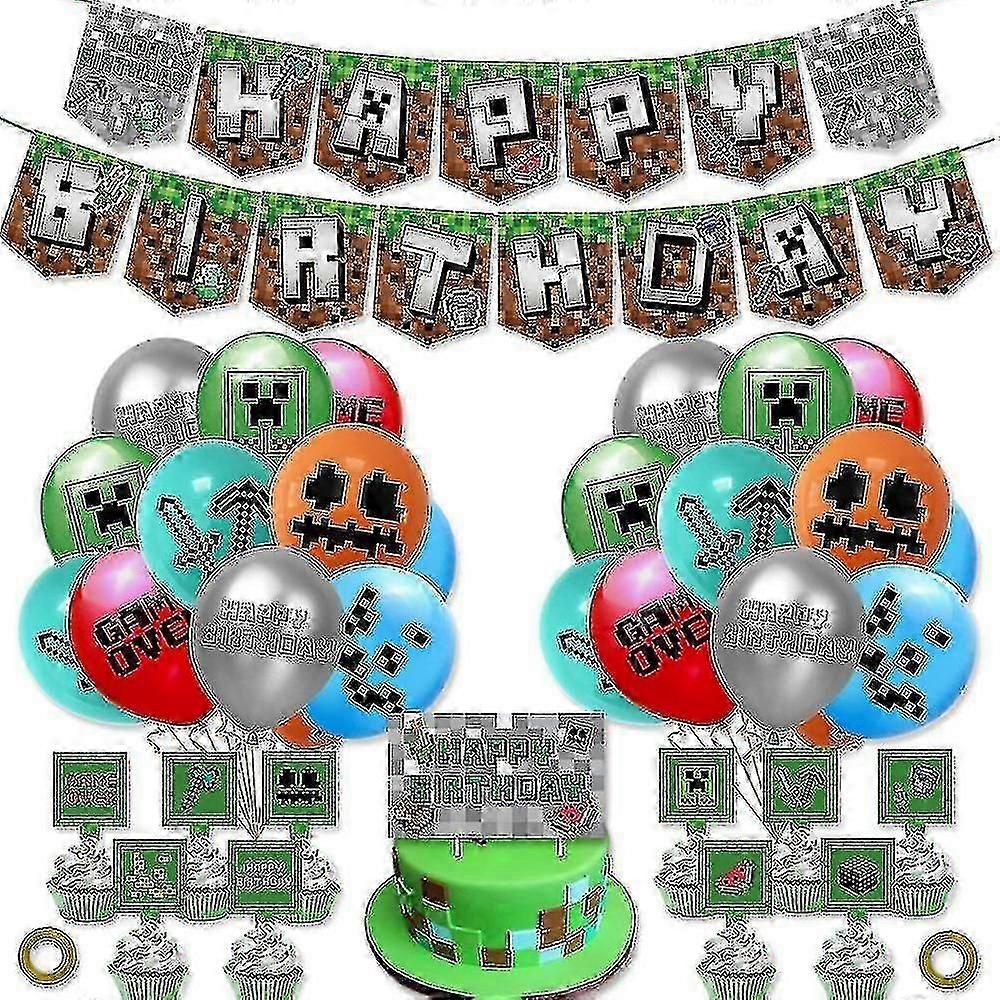 2024 New Minecraft Game Theme Balloons Banner Cake Topper Ribbon Set Birthday Party Decor -WH