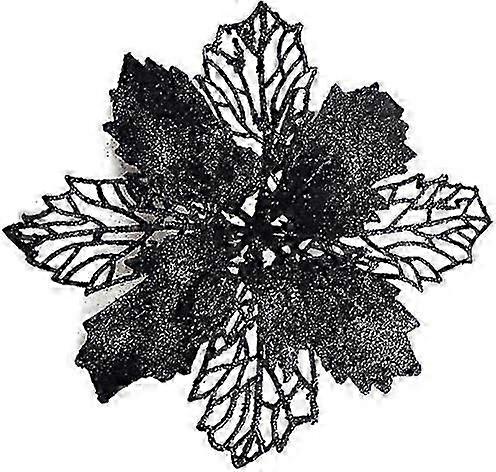 2024 12pcs 6.4" Glitter Christmas Flowers Black Poinsettia Artificial Flowers Christmas Tree Flower Wreath Tree Decoration with 12 Green Flower Stems