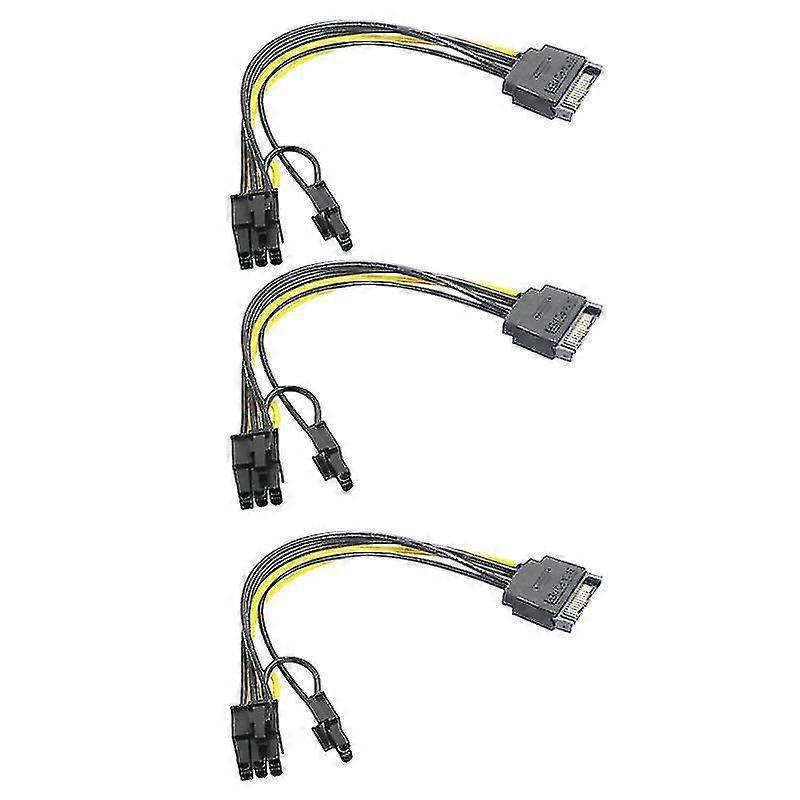 Easy to install. Making them less likely to become dislodged.This is a 15Pin SATA Male To PCIe 8Pin Male Video Card Power Cable.SATA power head connect PC host power supply SATA, 8Pin head connect g-raphic card 8PIN.Applicable to the computer has excess power SATA power head, no 8PIN g-raphic card power supply use.It can directly to double SATA 15PIN power to g-raphic card 8PIN power port, added g-raphic card current.Item name: 15pin SATA Male to 8pin(6+2) PCI-E Power Supply CableWire type: 18AWGcolour: as shownMaterial: ABS+PVC+metalSize: 18cmPackage Contents:3 CableOnly the above package content, other products are not included.Note: Light and different displays may cause the color of the item in the picture a little different from the real thing. The measurement allowed error is +/- 1-3cm.