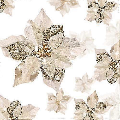 2024 24 Pieces Christmas Sparkling Poinsettia Flowers Artificial Christmas Flowers Wedding Christmas Tree New Year Ornaments (Gold)