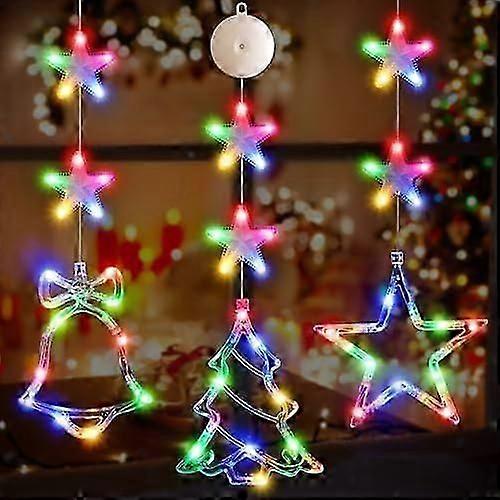 2024 3 Pack Tree Star Bell Christmas Lights, 60 Colored LED Battery Operated with Suction Cups, Timer, Window Fairy Lights Indoor for Christmas Decora