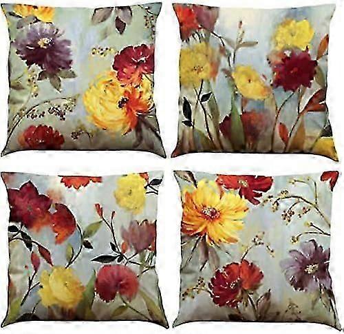 2024 4 pieces cushion cover 45 x 45, flower theme decorative cushion cover cotton linen cushion cover sofa cushion cover outdoor garden decoration