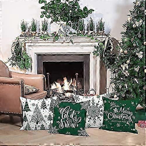 2024 4 pieces white and green cushion cover Christmas cushion cover 40 x 40 cm, winter snowflakes decorative Christmas pillows for Christmas decoratio