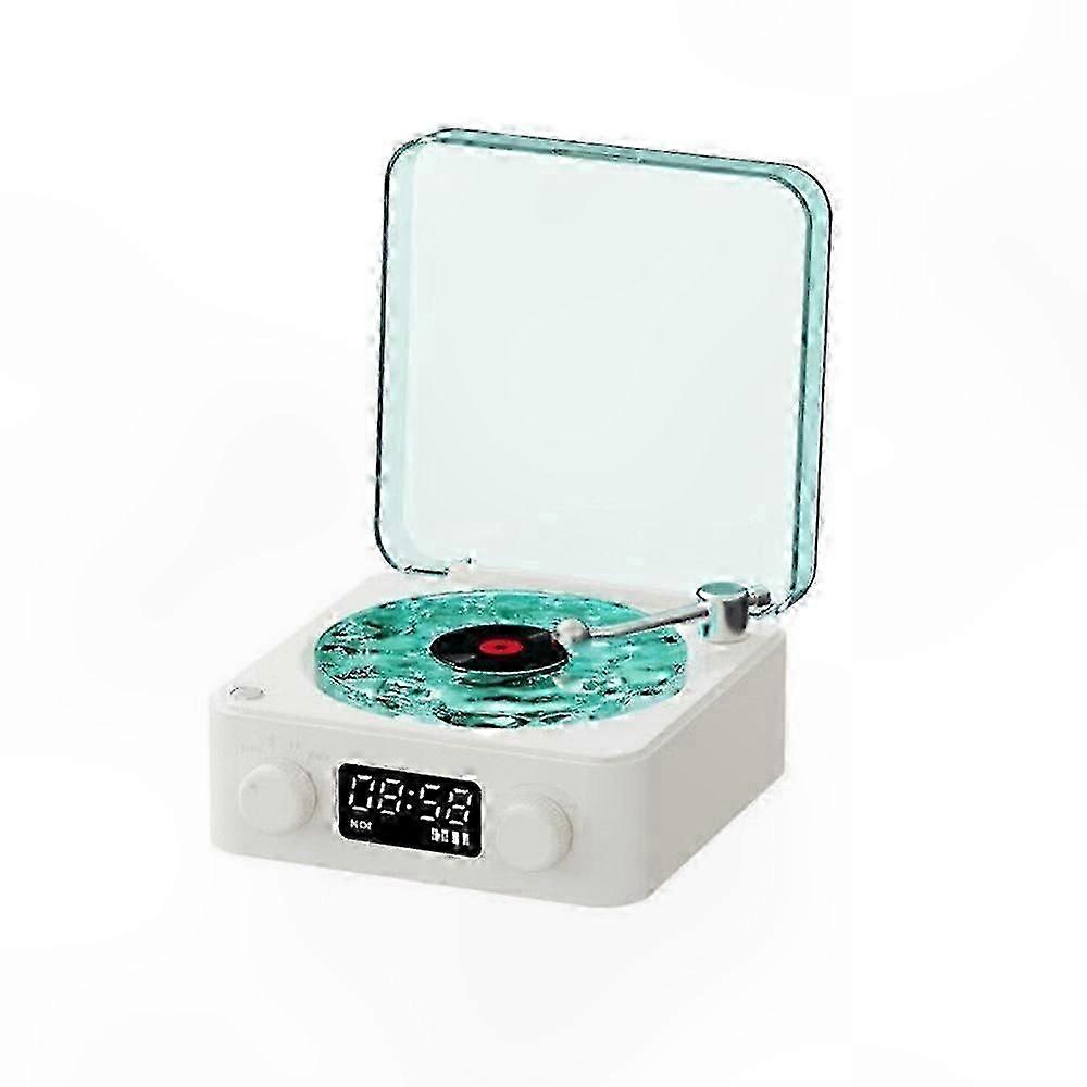 The Waves Vinyl Player, Bluetooth Vinyl Record Player, Retro Vinyl Record Player, Vintage Vinyl Record Player with Bluetooth Speaker, Vinyl Record Player with Immersive Ocean Sounds Immersive Ocean Sounds: The vinyl player features soothing ocean sounds and a unique water ripple effect on the turntable for a calming experience. Customizable Ambient Lighting: Create the perfect atmosphere with adjustable RGB lighting, including breathing and continuous light modes. High-Quality Sound: Enjoy balanced audio performance with support for Bluetooth, AUX, and TF card connectivity. Intuitive Controls: Easily adjust volume and switch tracks with user-friendly control buttons. Elegant Retro Design: Combines a classic vinyl player aesthetic with modern functionality to enhance any room decor. Color: Sea Salt White, Seaweed Green Weight: 688g Product Dimensions: 142*142*65mm Packaging Dimensions: 152*163*75mm Material: PC, ABS Battery: 1500mAh Input: 5V-1A Speaker: 40mm 4 5W Charging Time: 2-3 hours White Noise Playback Time: 6-8 hours Bluetooth Playback Time: 4-6 hours Package Includes: Packaging Box x 1 Greeting Card x 1 Instructions x 1 Data Cable x 1 Ocean Sticker x 1 Vinyl Record Player x 1