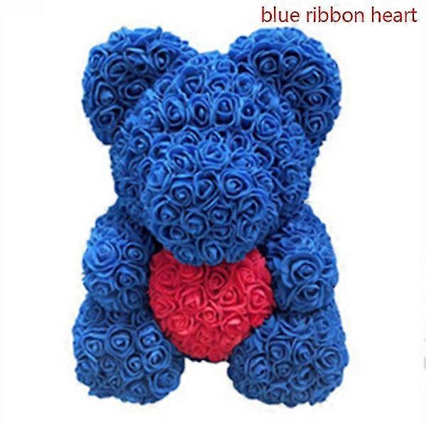 2024 40cm Teddy Bear Rose Heart Teddy Bear Artificial Flower Valentine's Day Gift blue ribbon heart