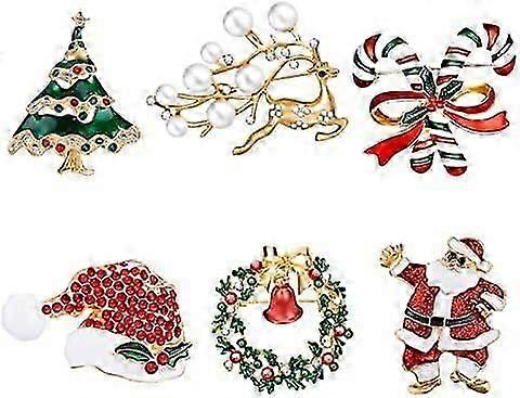 2024 6 Pieces Christmas Brooches Pin Set Rhinestone Christmas Brooches Crystal Christmas Decorations for Clothing Gift Ornaments