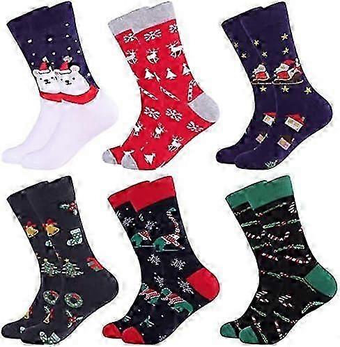 2024 6 Pairs Men's Christmas Socks, Funny Socks 39-46, Colorful Patterned Warm Funny Cotton Socks for Christmas Birthday and Advent Calendar