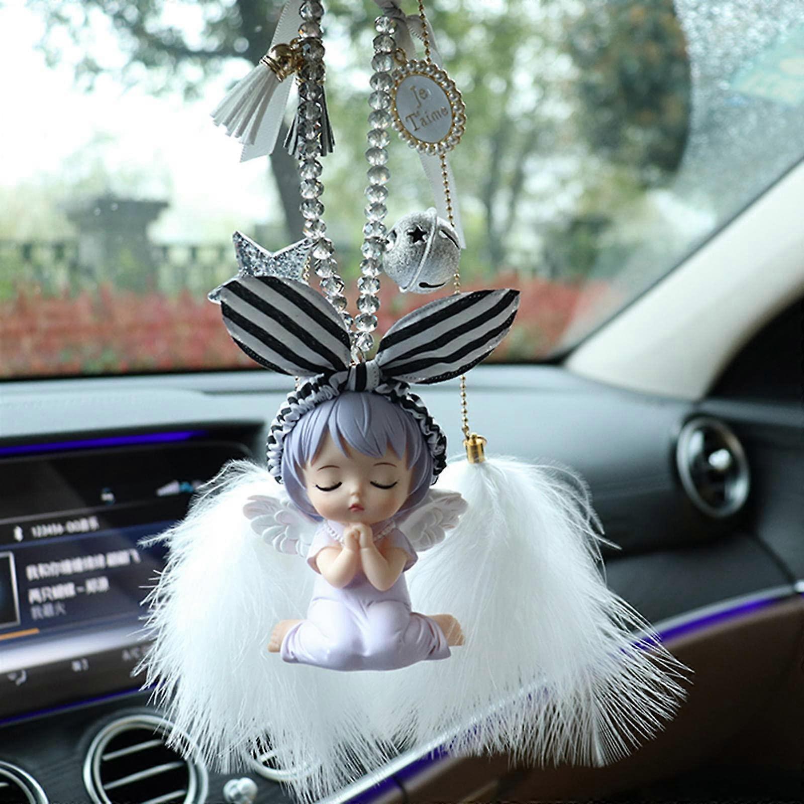 [Excellent quality] The car rearview mirror pendant is made of high-quality vinyl material,environmentally friendly,heat-resistant and non-deformation.The crystal beads are double-threaded to form a lanyard,which will shine in the sun.The material issafe,non-toxic and non-odor,and is safe for children.It is non-toxic for adults,safer and more fun to use. [Funny ornaments] The little angel girl has a cute shape and a moderate size.The length of the lanyard is just suitable for the rearview mirror of the car,which can avoid or affect the line of sight of the car or hit the windshield.When driving or windy,thelittle angel girl will swing to relieve visual fatigue and add a lot of fun to your driving. [Perfect size] The length of the rear-view mirror pendant angel girl: 25cm; width: 8cm; chain size: length 20cm,the perfect size,it will not block the sight when you drive,and can improve the atmosphere in the car. [Ideal Decoration] The Little Angel Car Rearview Mirror Pendant is suitable for hanging on the car rearview mirror,and can also be hung on your backpack,bedroom,living room and other places you want to decorate.Their hair accessories can be taken offand put on more Playful and cute,they will add fun to our driving and are also a good decoration for your office and home. [Perfect exquisite gift] This will be the perfect gift to express your best wishes.It can be given to your child,friend,classmate,relative,neighbor,friend,his or her Valentine's Day gift,boyfriend or girlfriend ,Wife or husband and colleagues.Itwill also be a perfect birthday gift,Thanksgiving gift,anniversary gift,Christmas gift,housewarming gift,and graduation gift for children.Suitable for families,bedrooms,children's rooms,living rooms,bars,shops,cafes,restaurants,parties,etc.