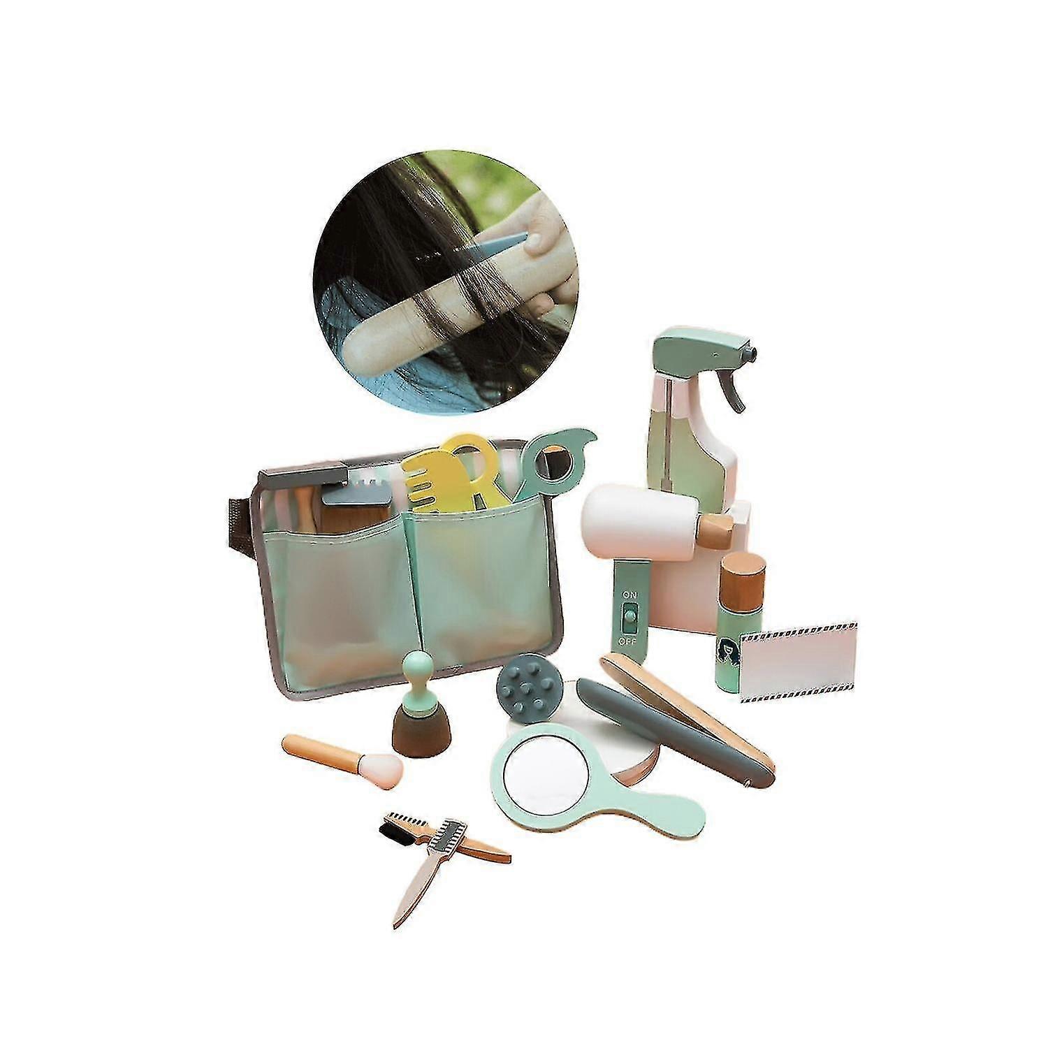 2025 Toy Hairstyling Game Kit Children Wooden Hairdressing Toy Barber Simulation Toy With Storage Bag Hands