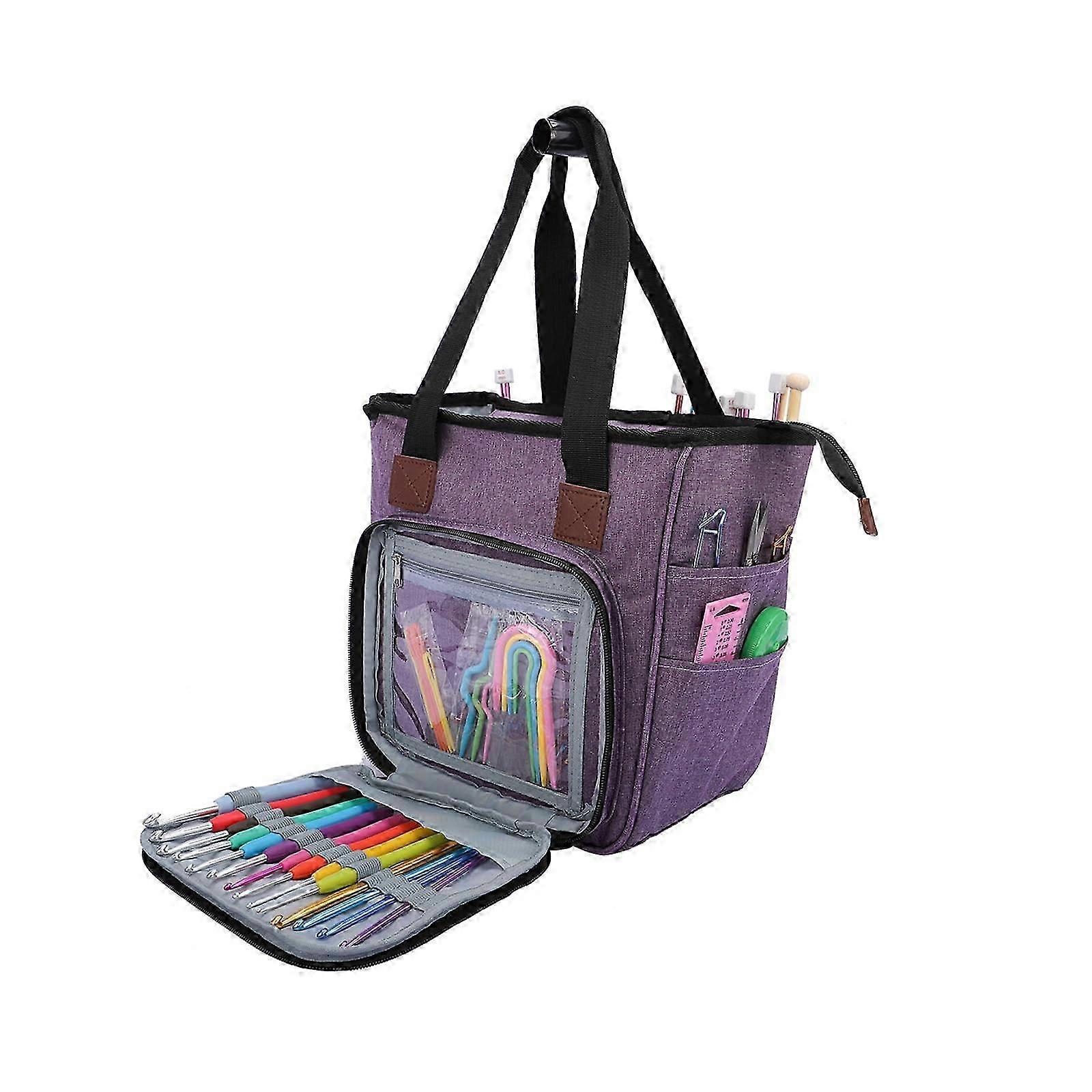 2025 Crochet Bag,Middle size Yarn bag,Knitting Bag,Tote organizer for Crochet Accessories and Supplies,Yarn storage handbag.(Purple)
