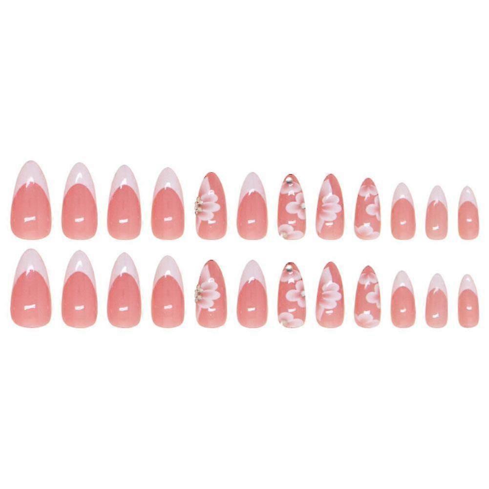 2025 Almond Flower Press on Nails Medium Long Pink Fake Nails with 24Pcs