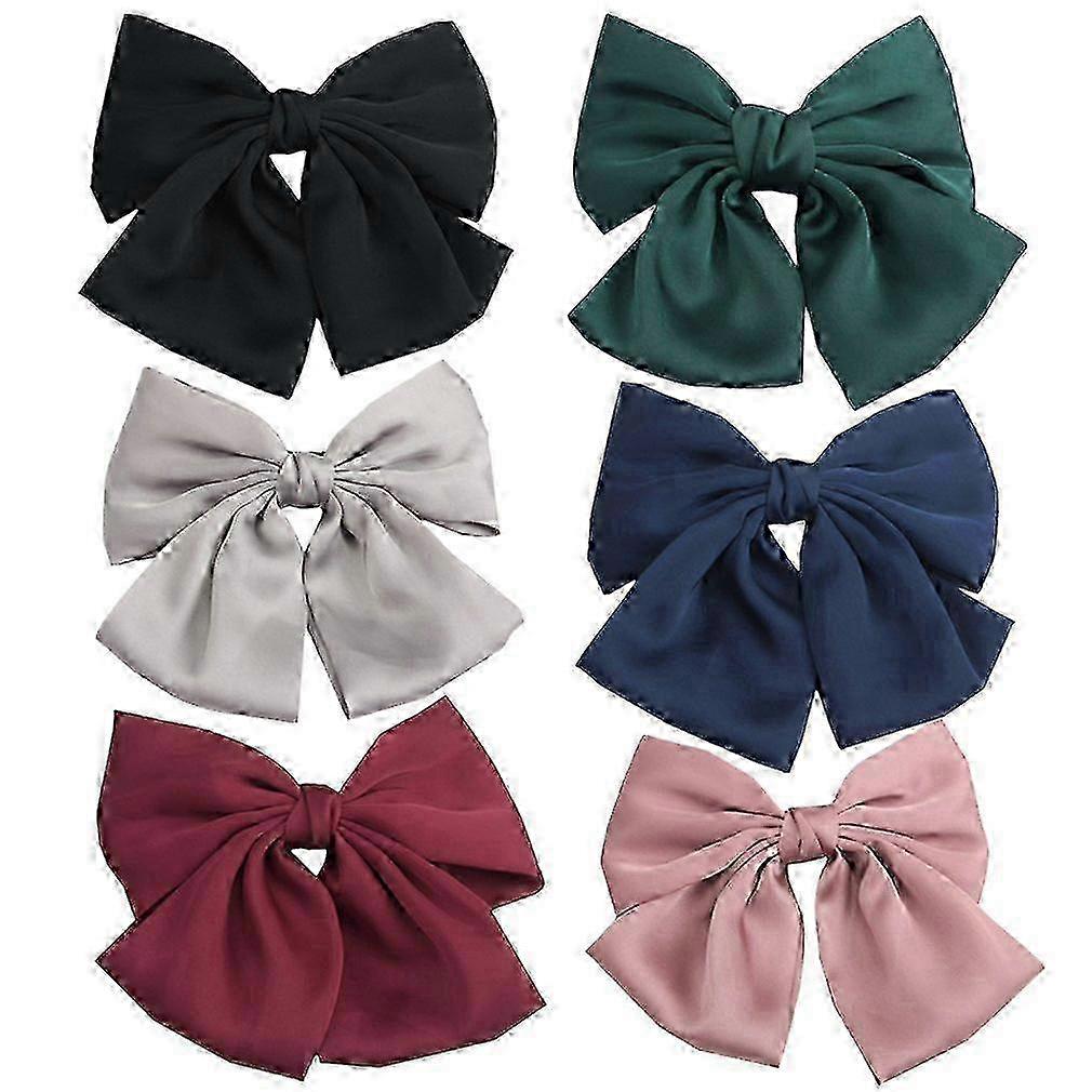 2025 Glamorous Hair Adornments, Silky Satin Bows For Women, Durable And Sturdy Design, Stylish Big Bow Clips With Decorative Silky Fabric, Set Of 6 Fo