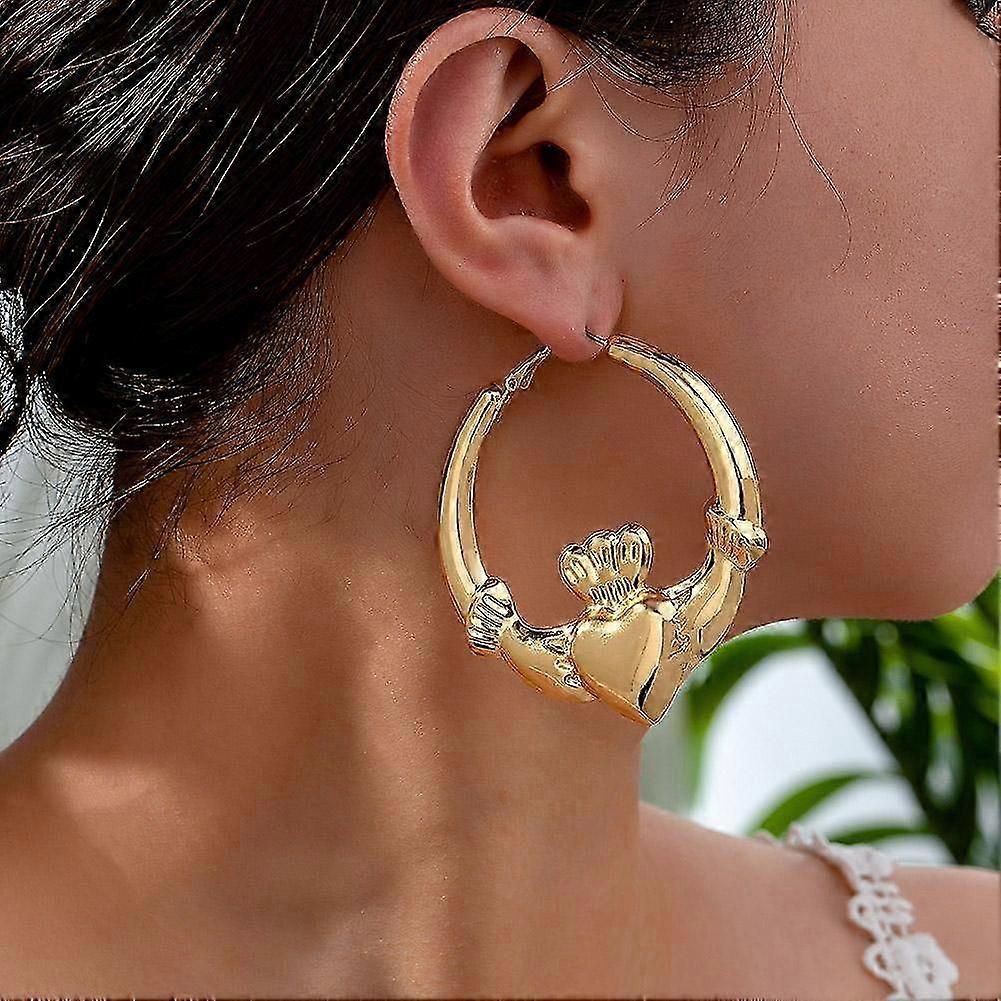 2025 Golden Earrings Heart Crown Hoop Earrings