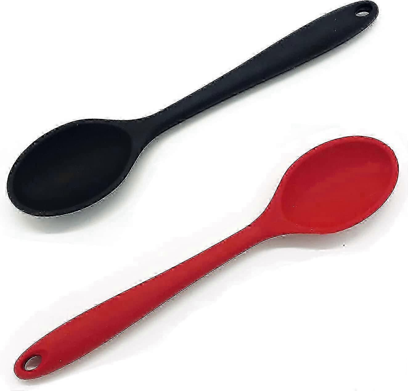 2025 Silicone Cooking and Baking Spoons Set - Black and Red Durable Plastic Utensils for Mixing and Serving