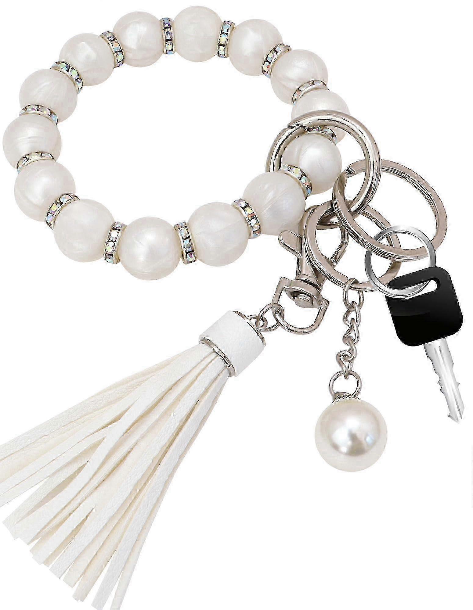 2025 Silicone Tassel Key Ring Bracelet Wristlet Keychain Women Gift Silver Bling Zircon Leather