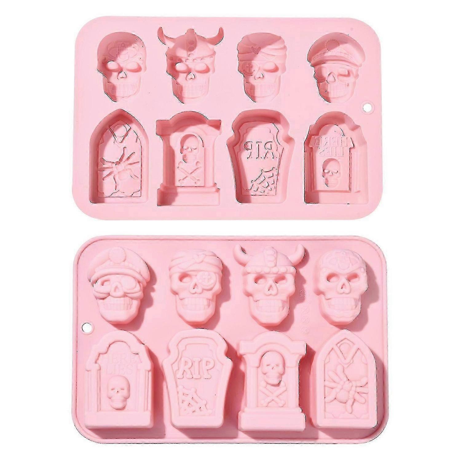 2025 Silicone Moulds 2Pcs Halloween Theme Skull Tombstone Shaped Chocolate Moulds