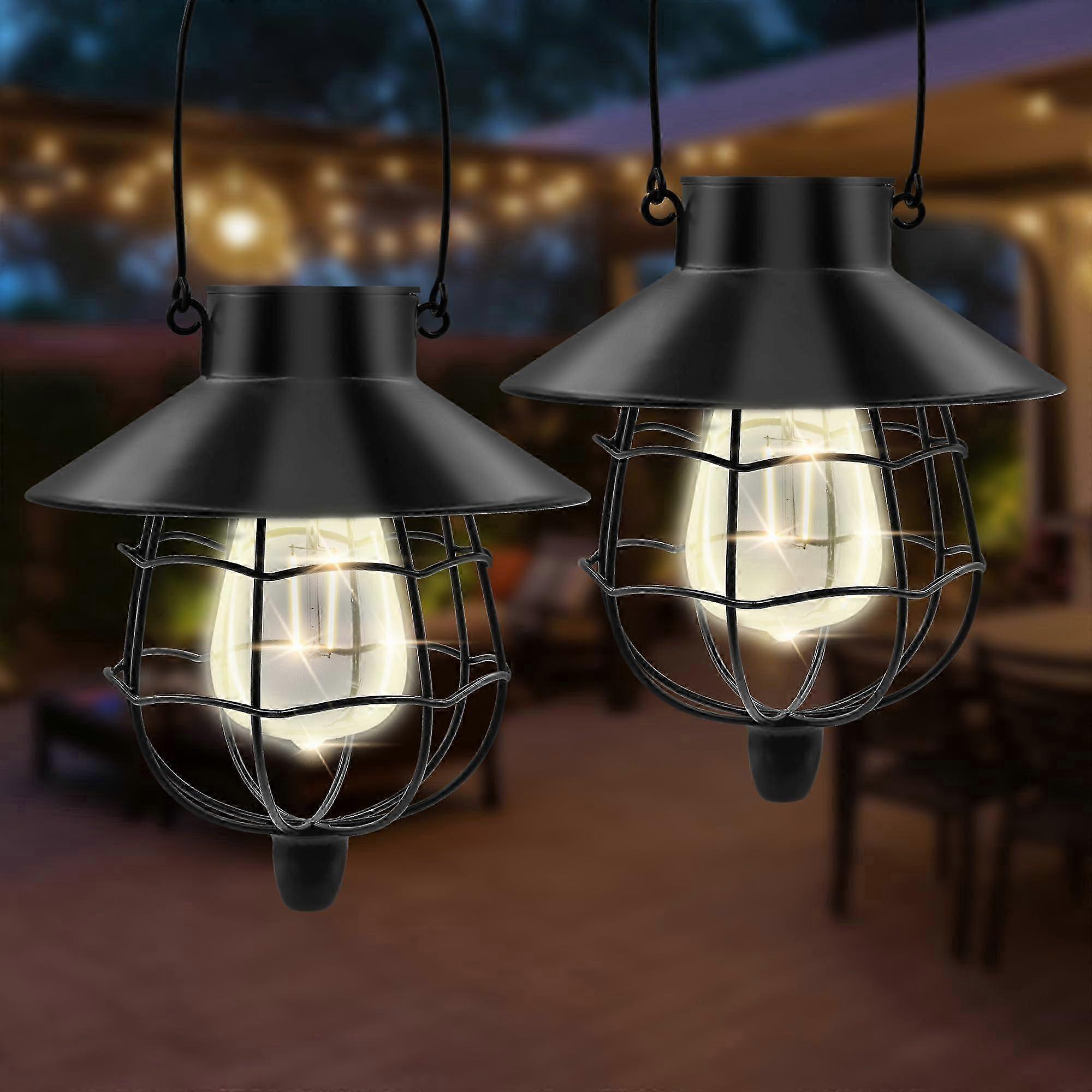 2025 Solar Hanging Lantern Outdoor Solar Lanterns Hanging Lights for Outside with Bright Warm White Light Pack(Black) 2
