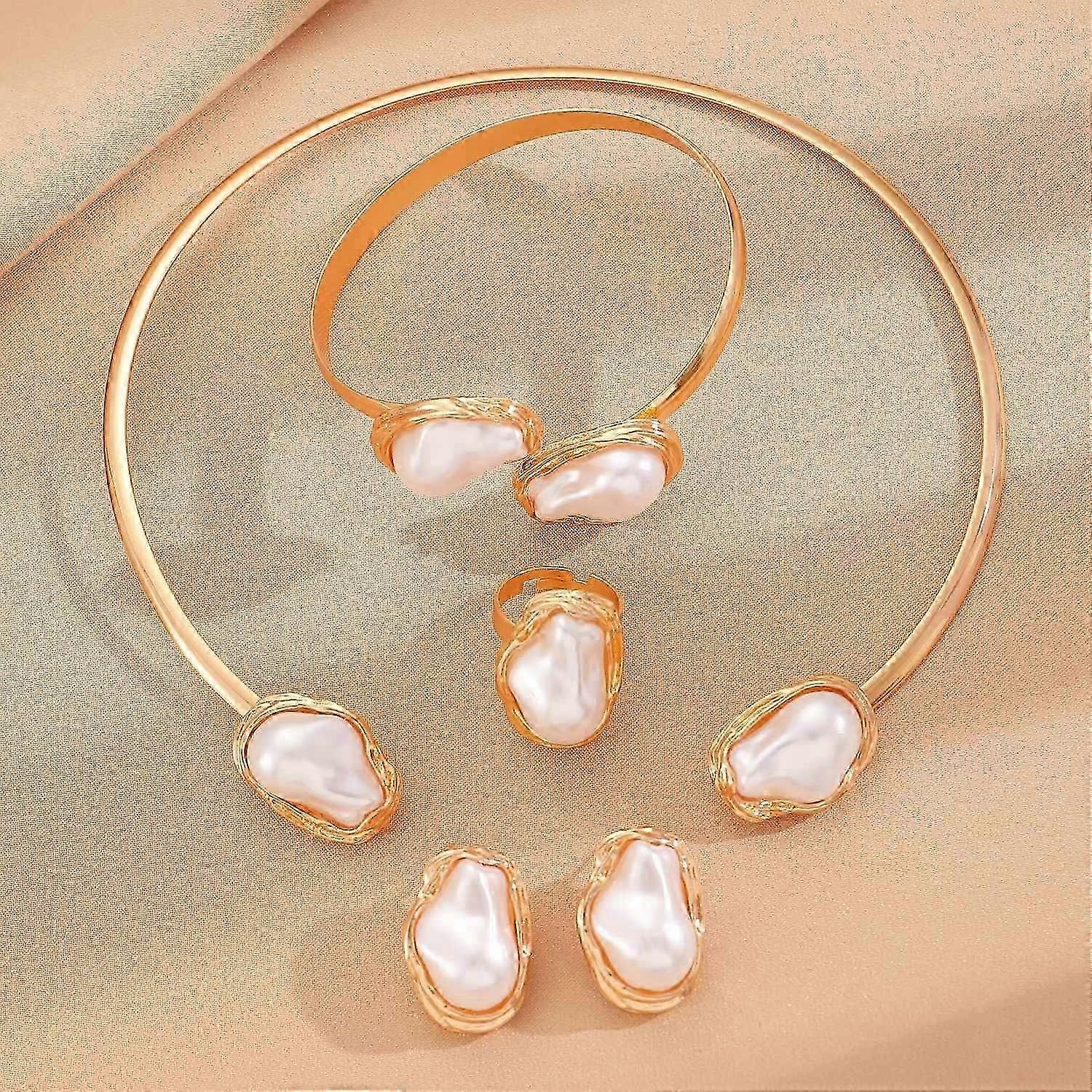 Tired of the same old jewelry? This Baroque Pearl Jewelry Set offers a fresh take on classic elegance, perfect for adding a touch of unique sophistication to any outfit. This set, featuring a pearl necklace, earrings, and ring, is designed to make you feel special and confident.