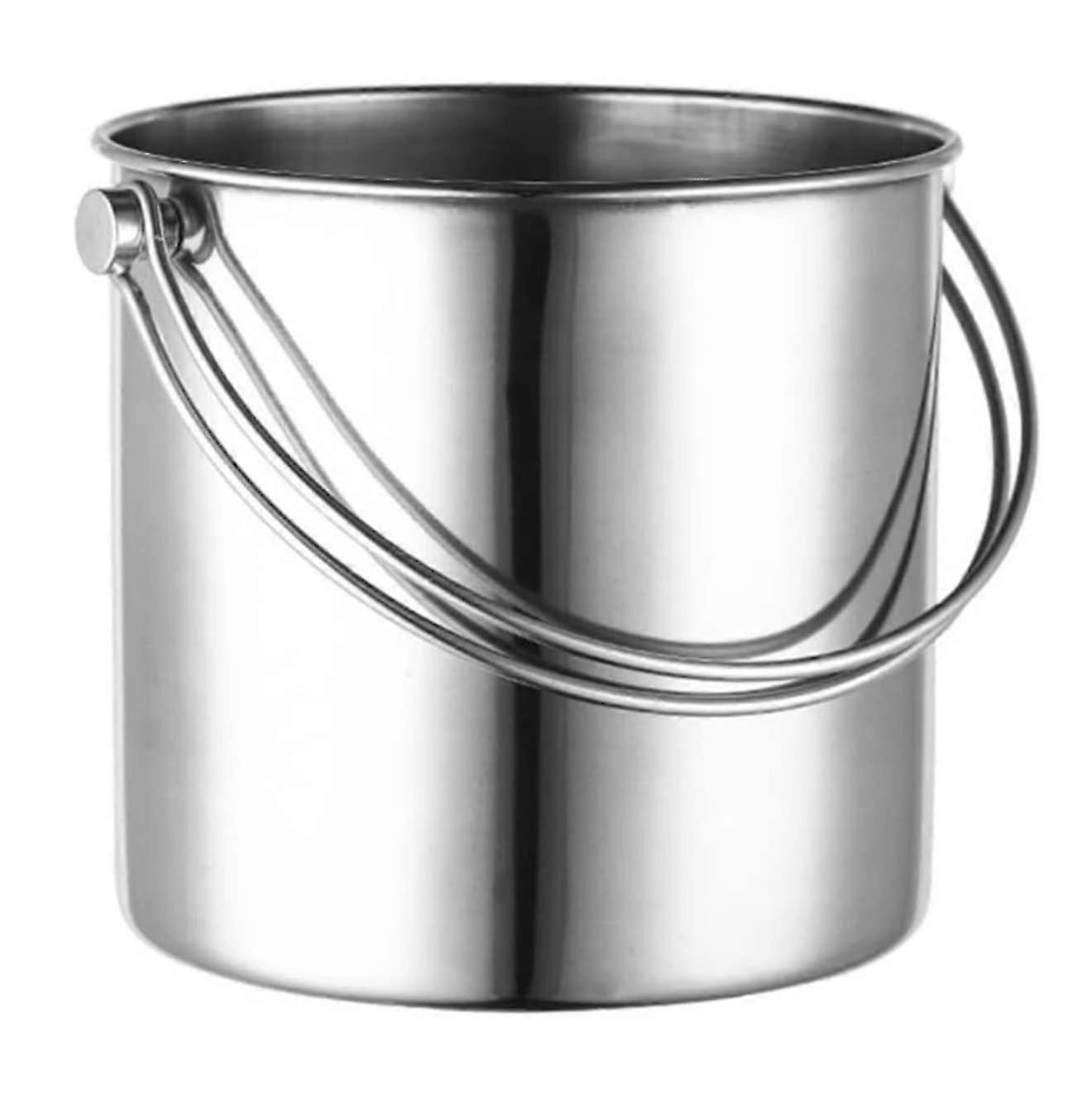 2025 Stainless Steel Ice Bucket with Handle, Thickened Champagne Bucket Wine Barrel Container for Bar Ice Cube Storage (14.5 * 14CM) 14.5*14CM Silver
