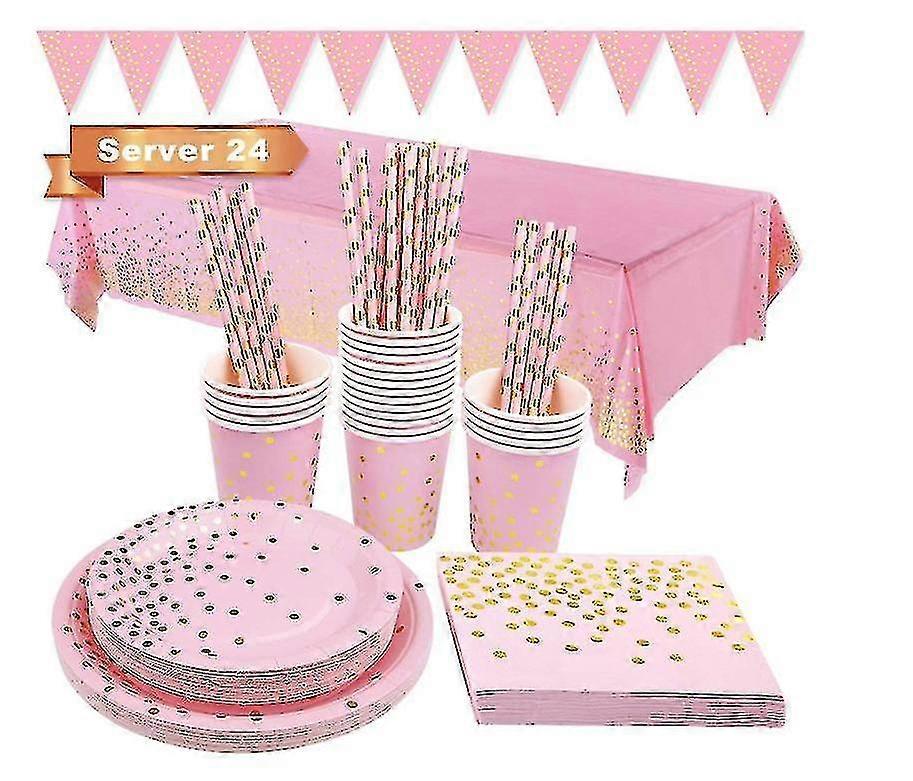 2025 Pink Party Disposable Tableware Set Paper Plate Cup Kids Adult Birthda