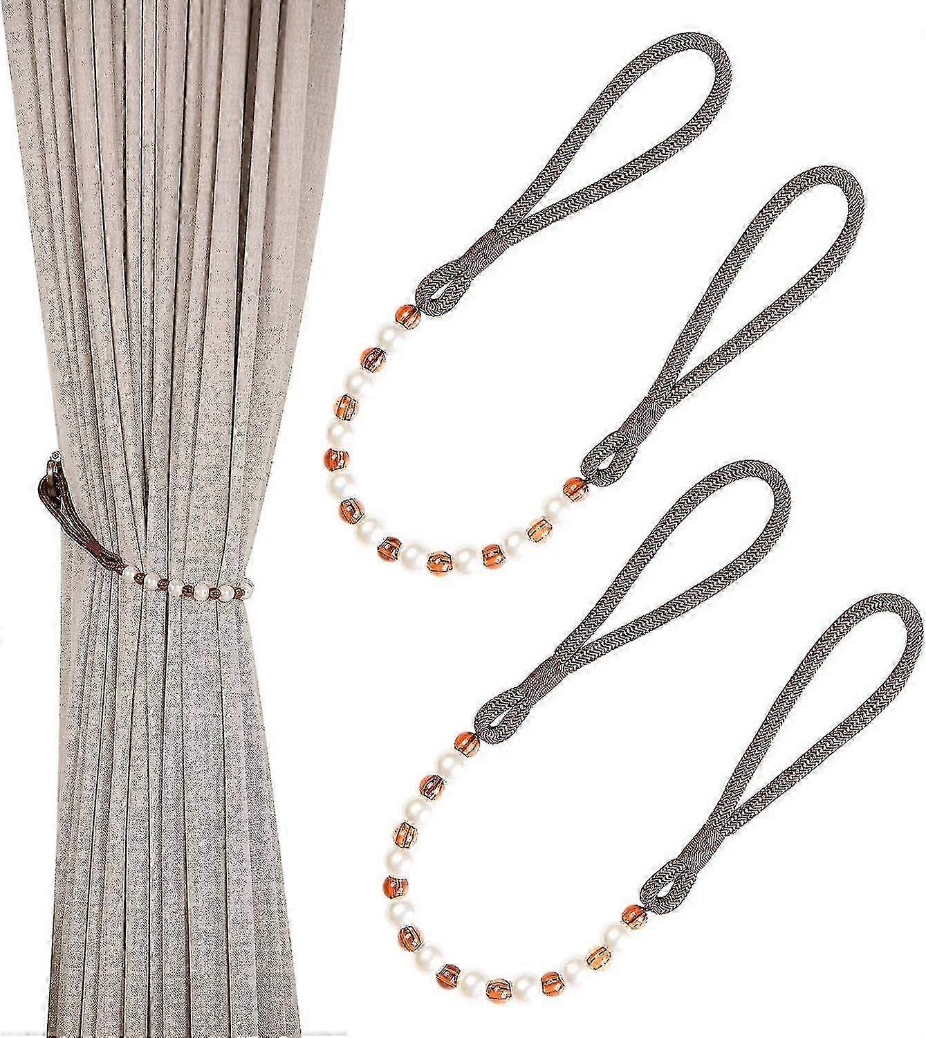 2025 Pair Of Acrylic Pearl Curtain Tie Backs Curtain Tied Rope Decoration (Brown)