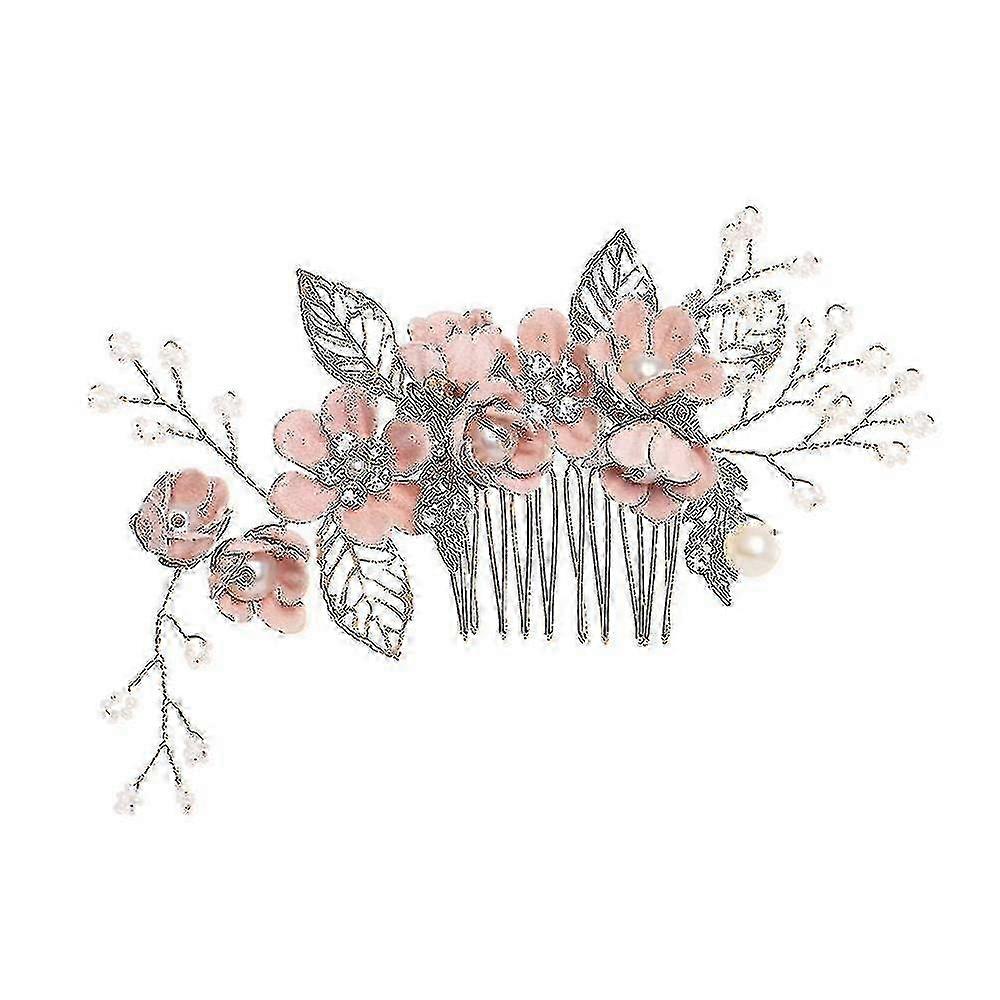 2025 Hair Side Combs Bride Wedding Hair Comb Flowers Pearl Bridesmaids Hair Piece Accessories Vintage Bridal Hair Clips (pink)