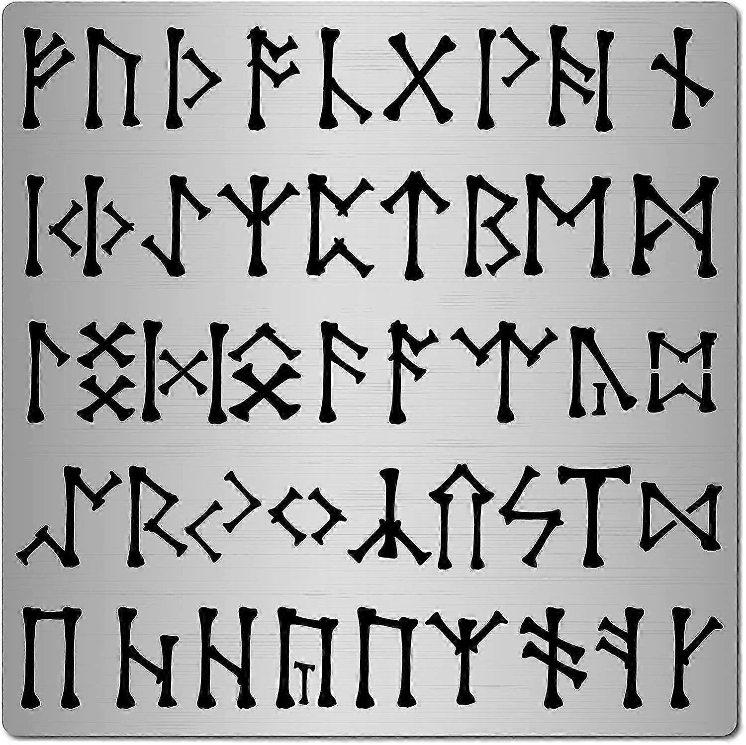 2025 Metal Runes Stainless Steel Ancient Alphabet Elder Futhark Plantillas Template Gothic Font Lettering Stencils for Painting Pyrography Engraving C