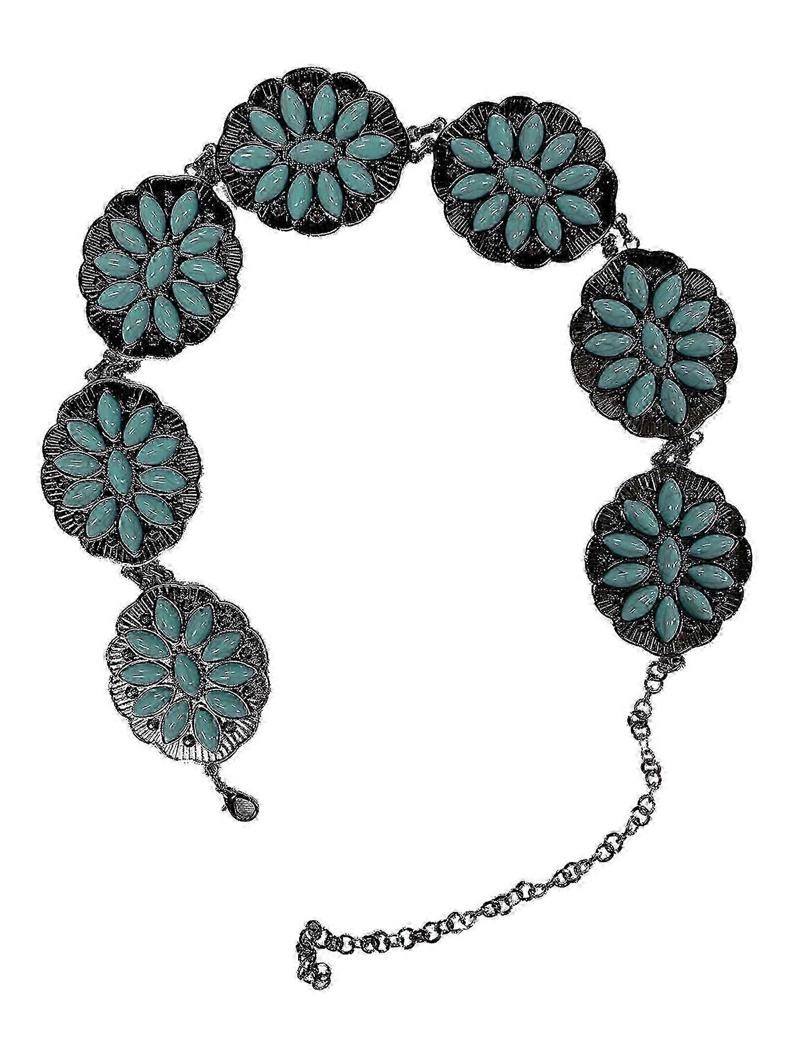 2025 Women's Western Turquoise Stone Blue Chain Belt, Hip High Waist Vintage Metal Charms Retro Slim_WYT