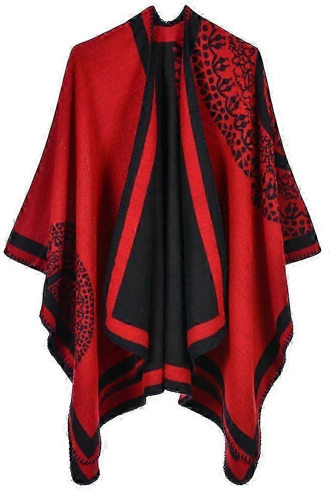 2025 Retro Style Warcifle Warp Panço Cape Open winter reversible printed blanket scarf Haddigan tartıgan sides a-black-red