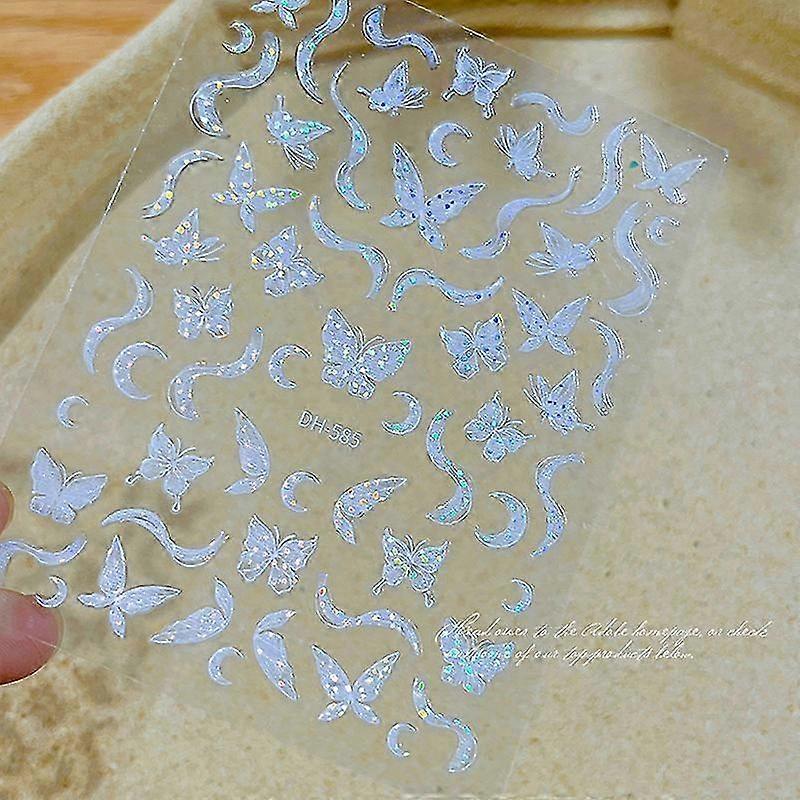 2025 Laser Dazzling Aurora Butterfly Shape Paintings Nail Sticker Enhancement Adhesive Nail Decal Accessories