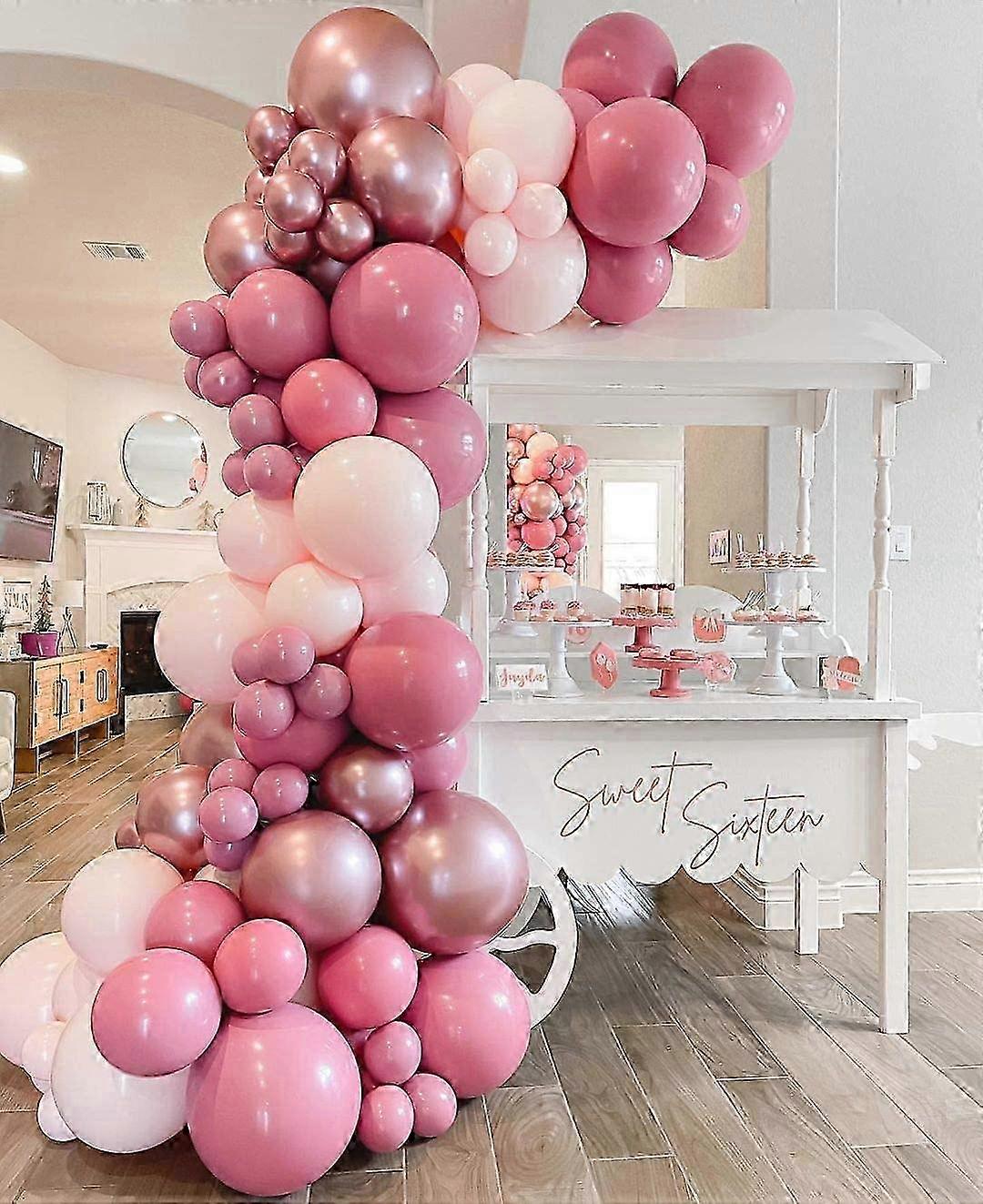2025 Rose red Balloon Garland Arch Kit 100 Pack Rose red Baby Pink Metallic Rose Gold Balloons,Double Latex Balloons for Princess Wedding Baby Shower
