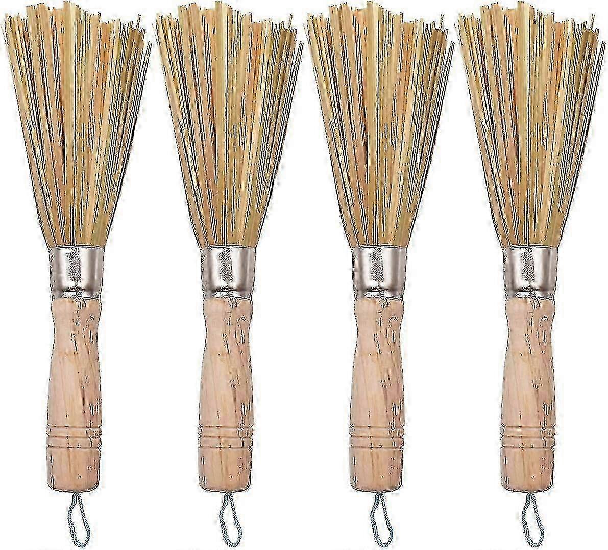 2025 Wok Brushes,RoadLoo 4 Pcs Wok Cleaning Whisk Natural Frying Pan Brushes Traditional Kitchen Cleaning Brushes
