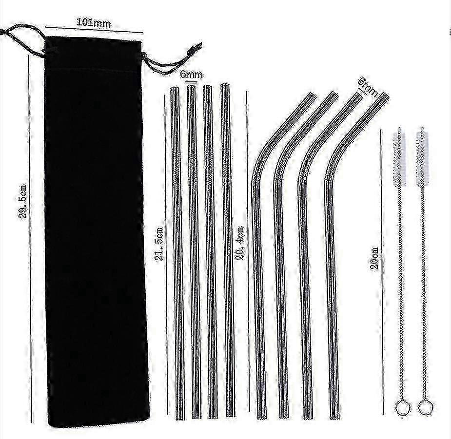 2025 Reusable Stainless Steel Straw Set Drink Coffee Milk Tea Juice Straws-color:black 10piece Set