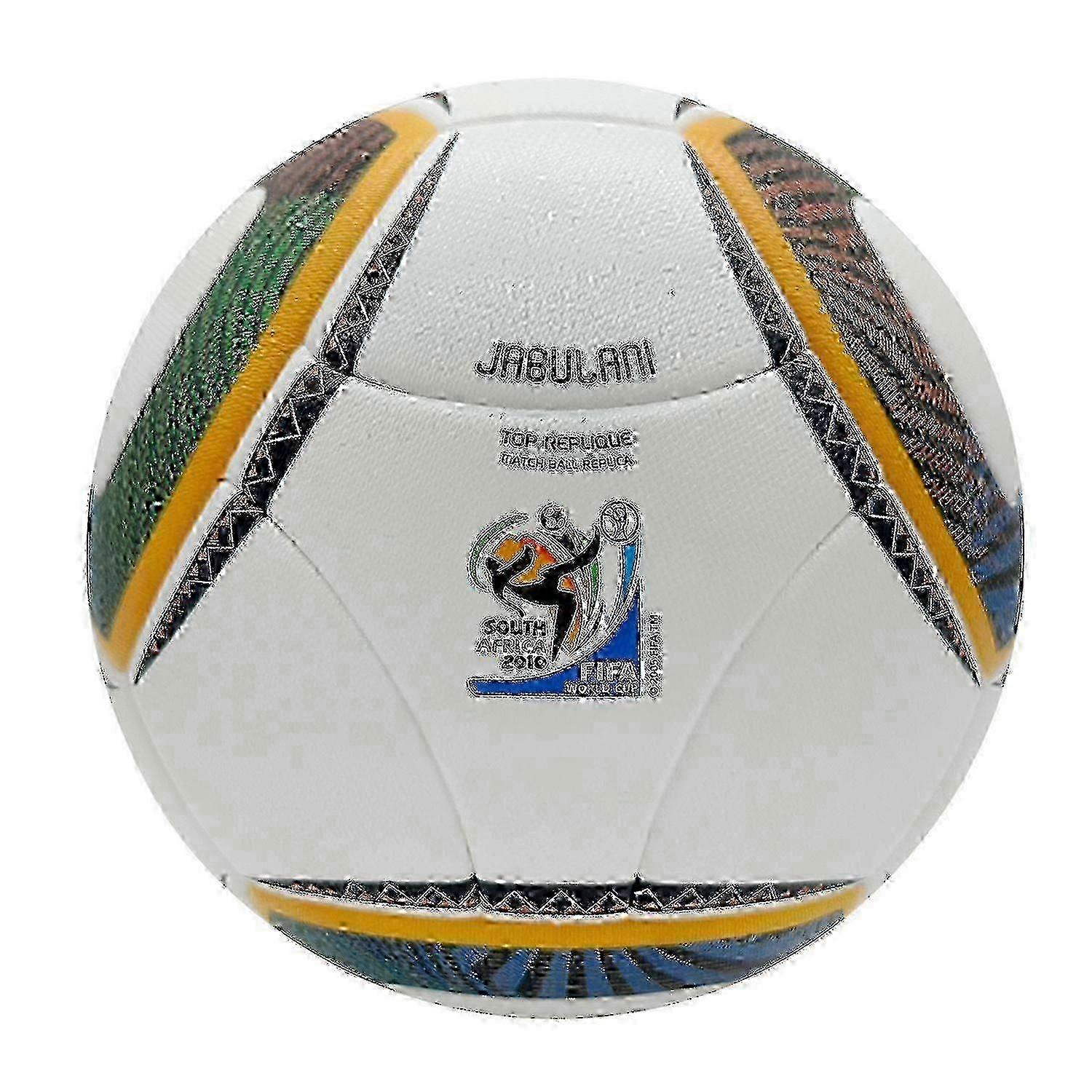 This football is based on the official ball used at the 2010 World Cup in South Africa, embodying the passion and glory of the World Cup, and is specifically designed for adult matches and training. The ball features a colour scheme dominated by black, white, and yellow. White serves as the primary colour, creating a clean and striking visual effect. Black irregular geometric patterns intertwine with yellow lines, with the yellow lines drawing inspiration from the colours of the South African flag. Graphic elements incorporate cultural and artistic motifs from the African continent, such as traditional African weaving patterns and tribal totems, creating a visually striking design that evokes the intense passion of South African football stadiums. In terms of materials, the ball is made from polyurethane (PU), offering a soft touch that allows players to feel the ball's texture when receiving or controlling it, while also providing exceptional durability. Whether used on artificial turf, natural grass, or rough surfaces during high-intensity training, the ball can withstand wear and tear, ensuring a long service life. Through advanced hot-melt technology, the eight outer panels are seamlessly connected to form the ball's structure, significantly enhancing stability and accuracy during flight. During flight, it effectively reduces deviations caused by uneven ground, making passing and shooting trajectories easier to control, helping players perform at their best during matches and training. The interior features a butyl rubber bladder with strong air retention capabilities, maintaining stable pressure over extended periods. This ensures the ball retains excellent elasticity and performance without frequent inflation, providing convenience for adult players' daily training and matches. The size is strictly designed according to the size 5 standard, weighing approximately 440 grams, meeting the requirements for adult football matches and training. This allows players to fully adapt to the specifications of official match balls during training, thereby enhancing their skills. Whether you are a professional player engaged in high-intensity daily training or a football enthusiast enjoying amateur matches, this 2010 South Africa World Cup-themed football is an excellent choice, helping you unleash your passion on the green field. Package contents: 1 football 1 needle This football is in an uninflated state. Upon opening the packaging, you may notice slight natural patterns (transportation indentations) on the ball's surface, which is a normal phenomenon and does not affect its quality. We recommend the following steps for your first use: 1. Inflate to standard pressure 2. Gently tap and roll the ball multiple times to help it take shape 3. Leave it to rest for 96 hours or engage in more activities to restore its full shape. Note: Due to the light and screen setting difference, the item's color may be slightly different from the pictures. Please allow slight dimension difference due to different manual measurement. Sold by-DIMEANI official store