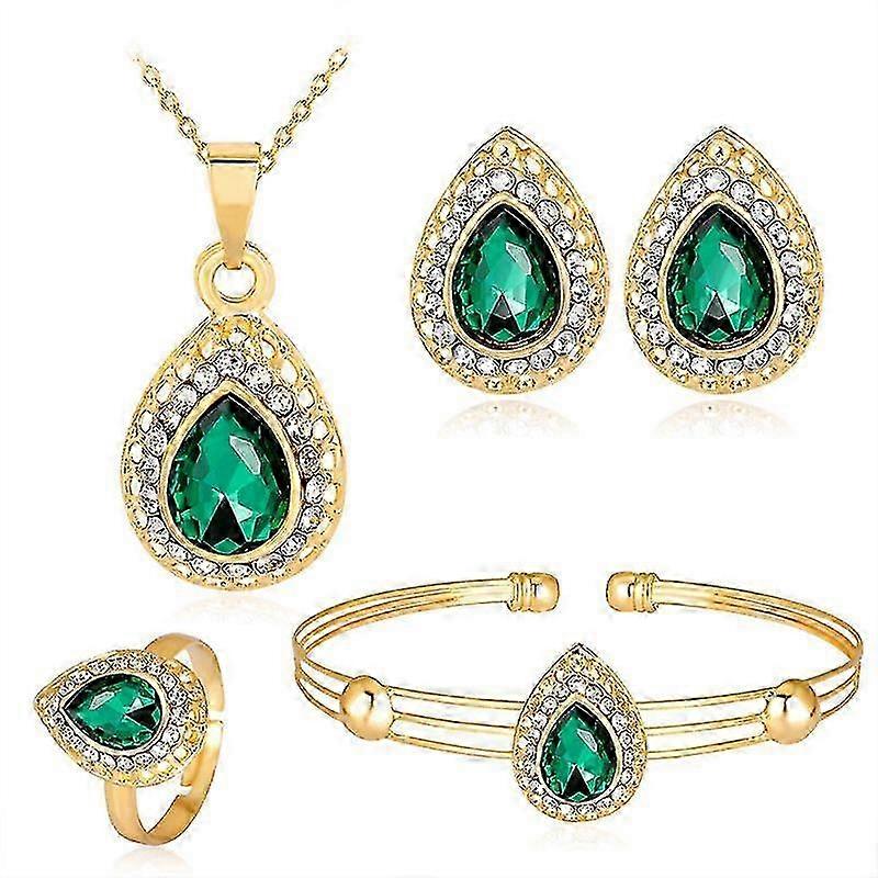 2025 Women Pendant Necklace Open Ring Earrings Bracelet Crystal Water Drop Wedding Bridal