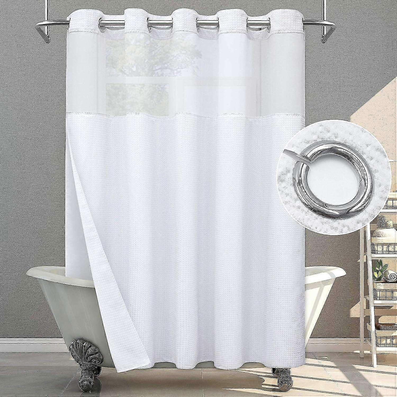 2025,hookless Shower Curtain Double Layer Heavy Mesh Top Window Shower Curtain Set With Snap Lining