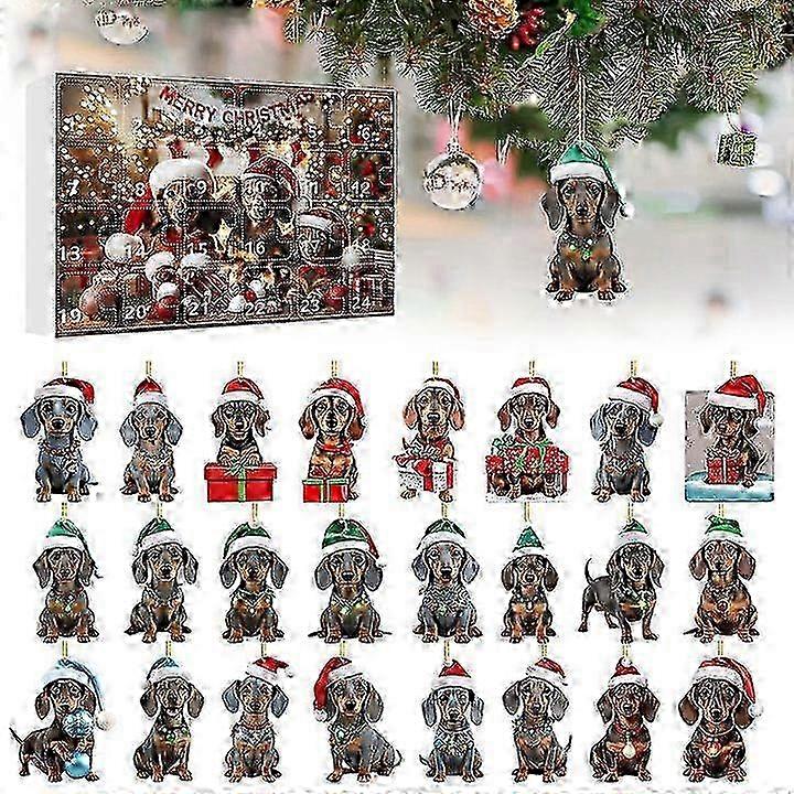 2025 Festival Vacation Advent Calendar 24 Day Christmas Countdown Calendar Dachshund Pendant With Santa Hats 2d Xmas Tree Chicken Ornaments For Christ