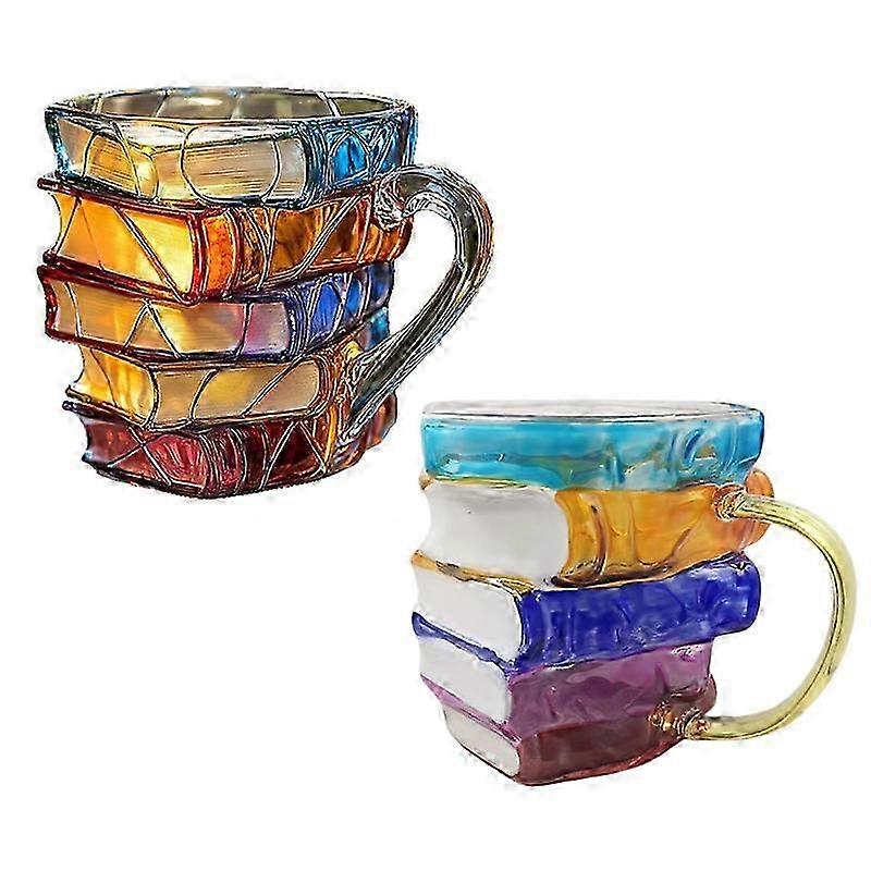 2025 Painted Book Glass Mug 2026 New 11oz Stackable Coffee Real Glass Mugs Novelty 3D Books Coffee Glass Mug