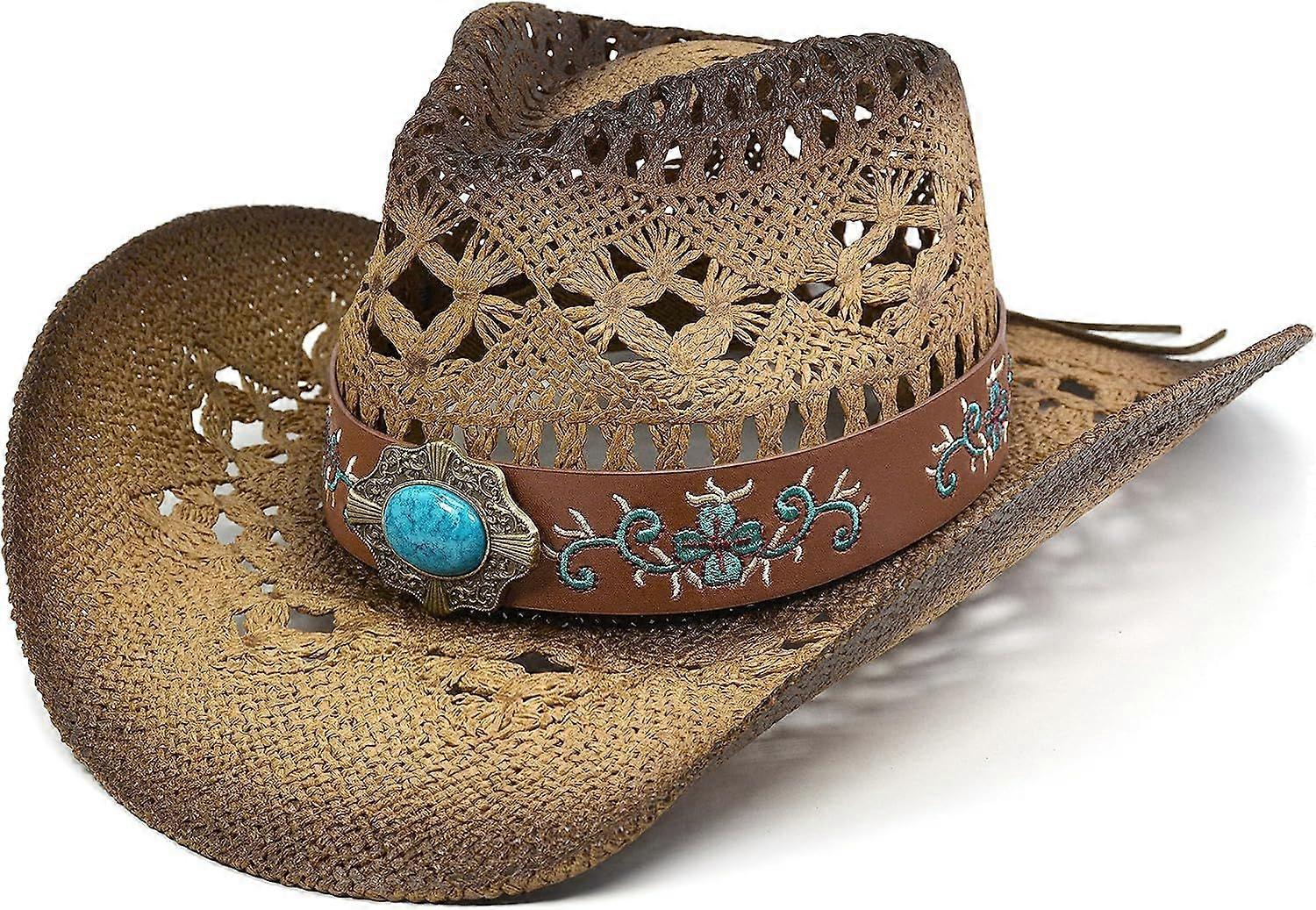 2025 Latest Model Cowgirl Hats for Women Straw Cowboy Hat Western Beach Sun Hat