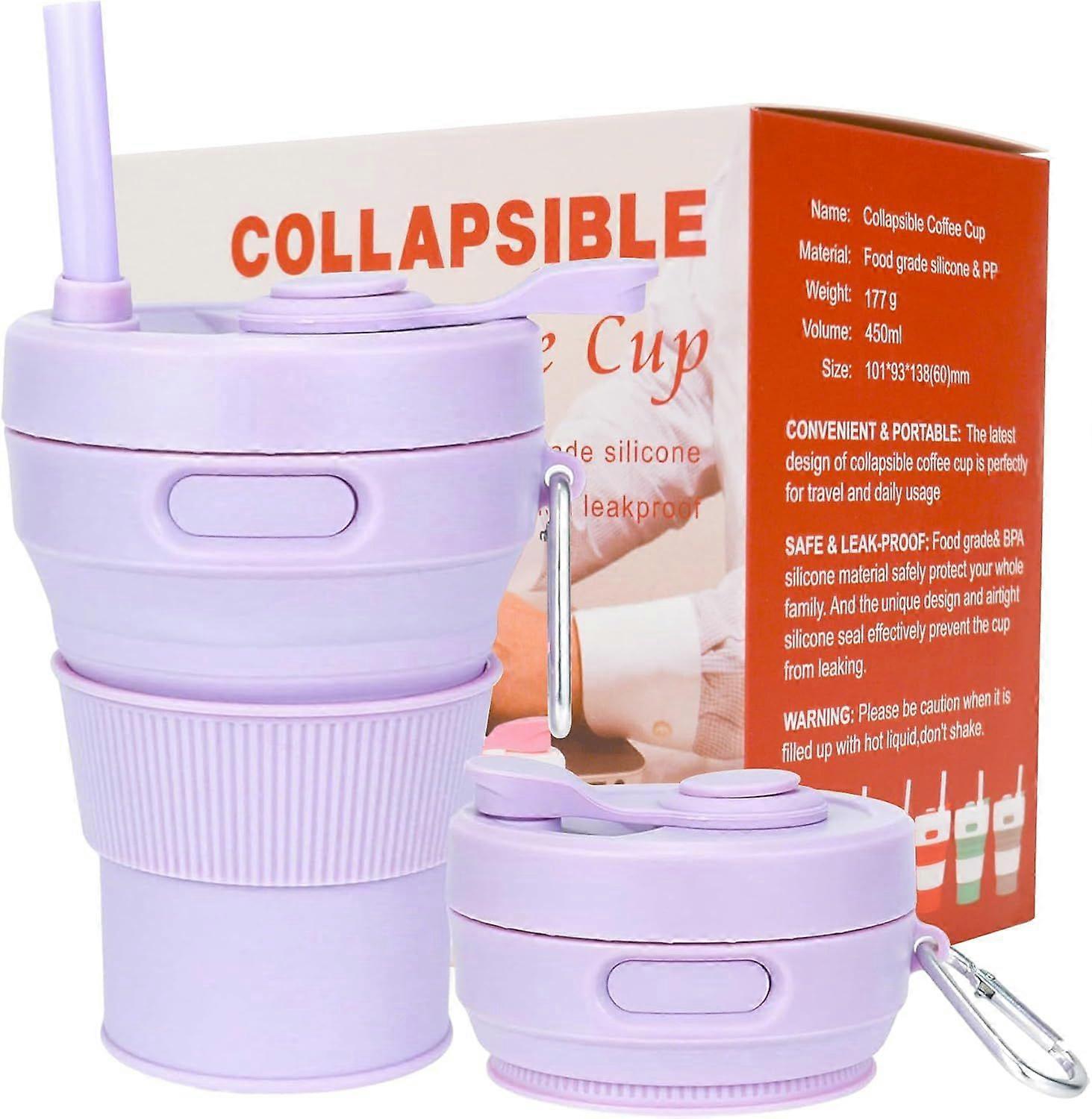 2025 Latest Model Silicone Collapsible Travel Mug Purple 15oz / 450ml -