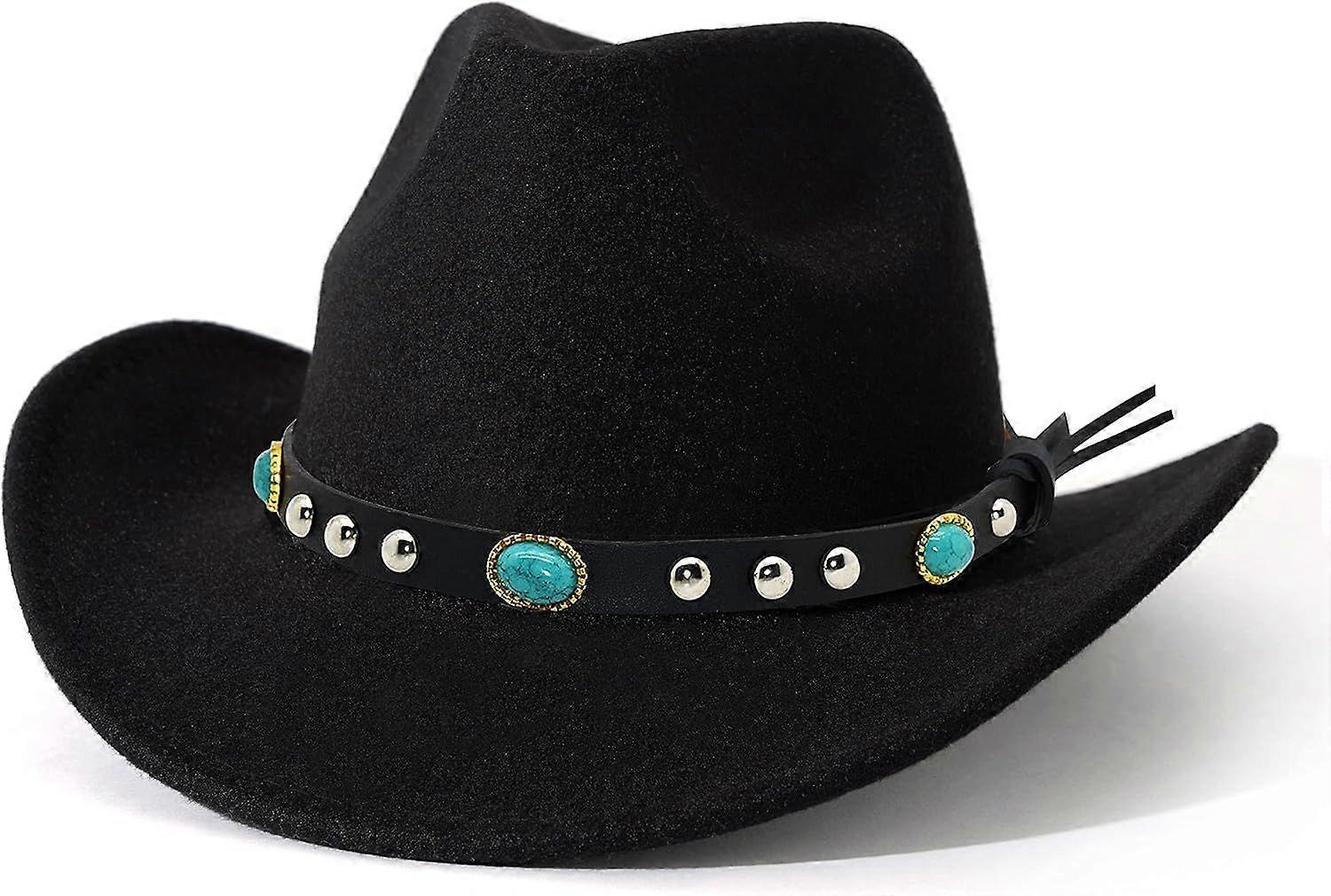 2025 Latest Model Felt Wide Brim Western Cowboy Hat for Men & Women Stone-black Medium