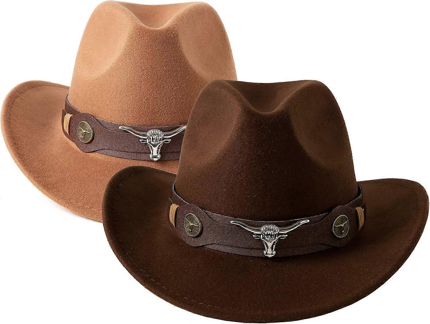 2025 Latest Model Womens 2 Pack Western Style Cowboy Hats with Wide Belt Buckle
